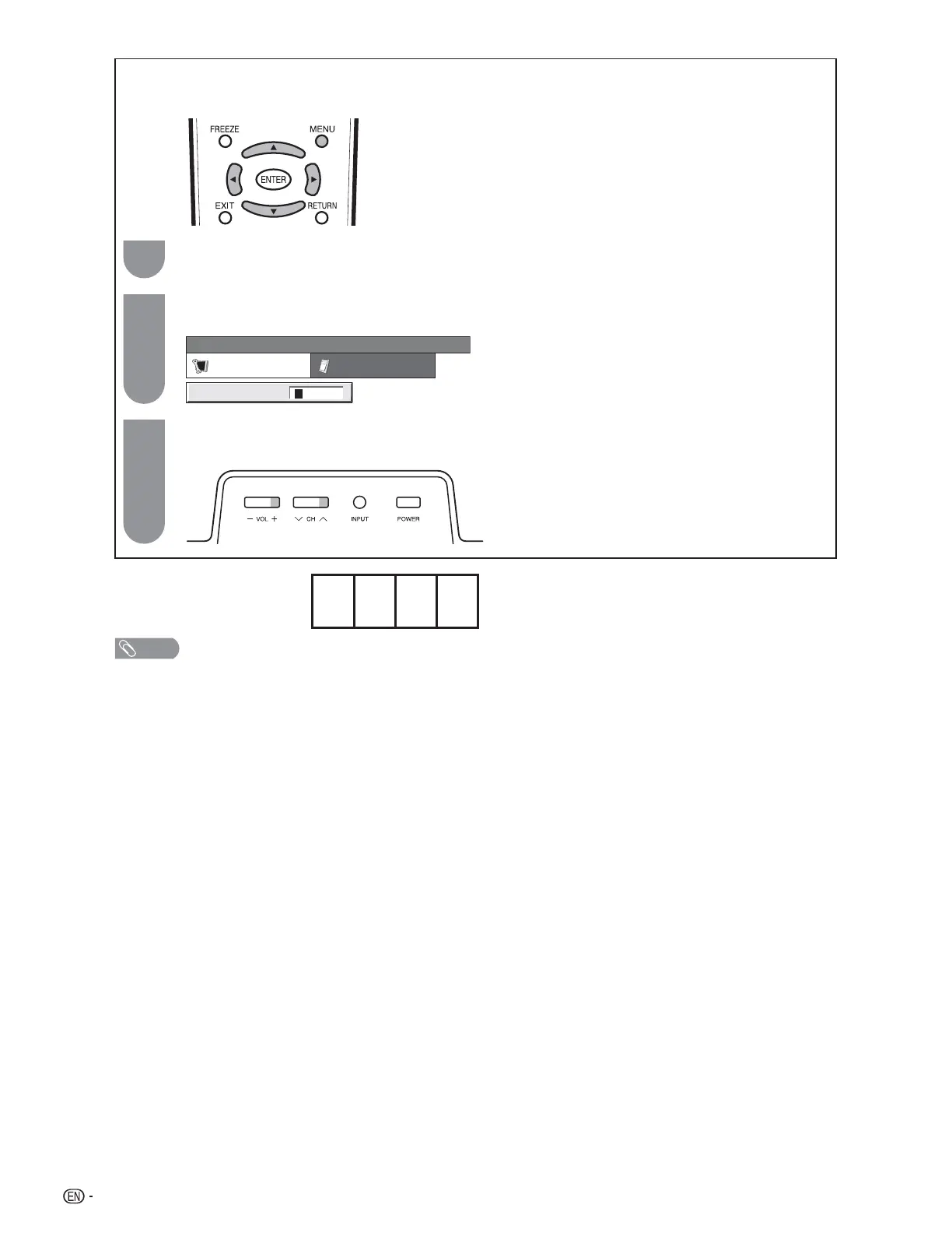 to select “EZ Setup”, “CH Setup”, “Parental CTRL” or “Reset”, and the Secret number