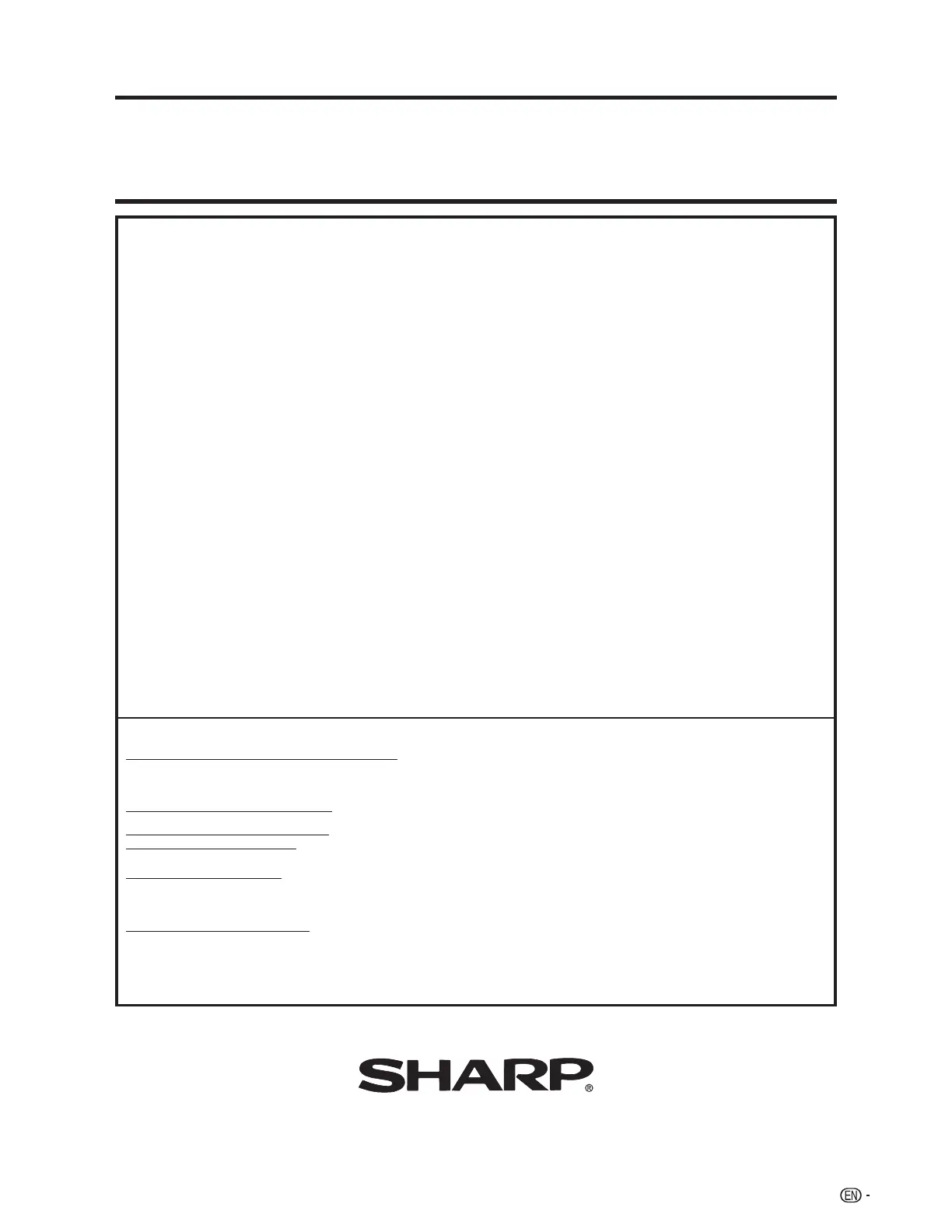TO OBTAIN PRODUCT INFORMATION, CALL 1-800-BE-SHARP OR VISIT www.sharpusa.com
