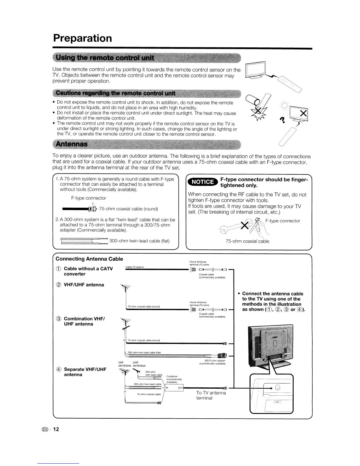 into the antenna terminal at the rear of the TV set.