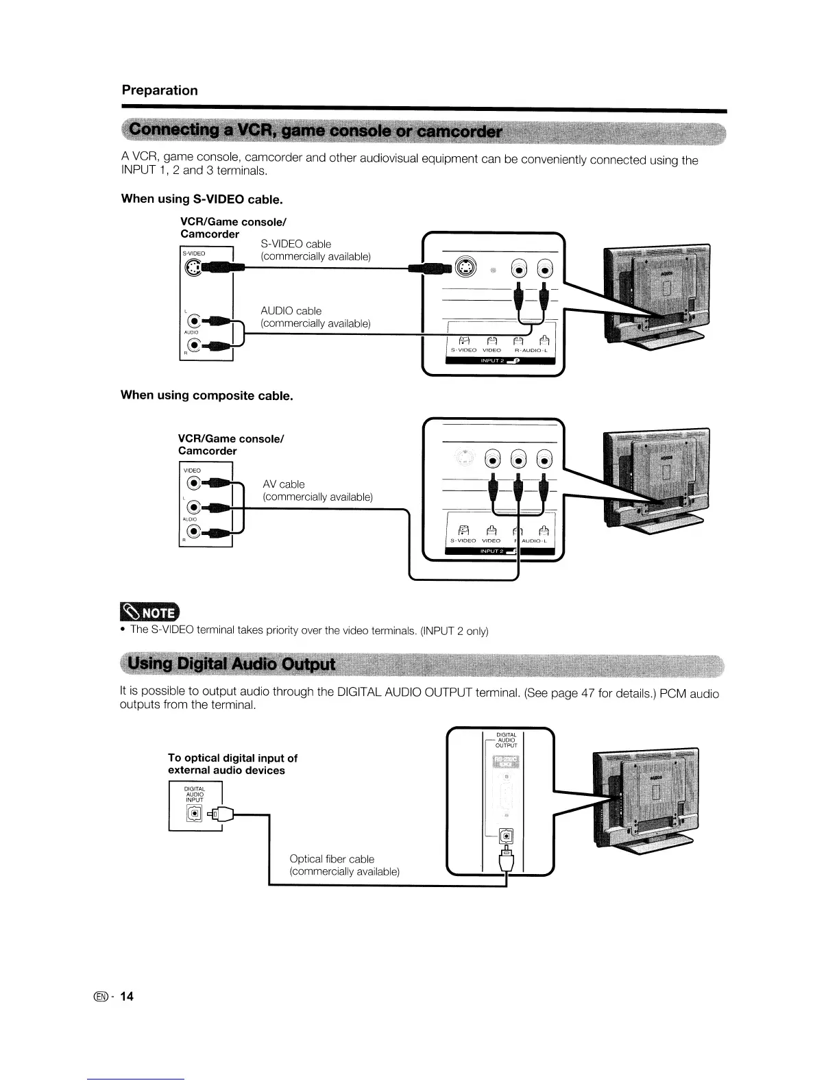 The S-VIDEO terminal takes priority over the video terminals.
