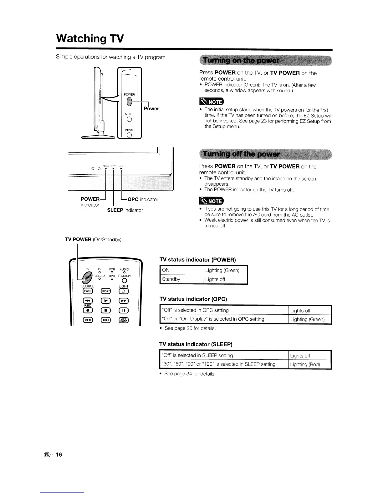 • The POWER indicator on the TV turns off.