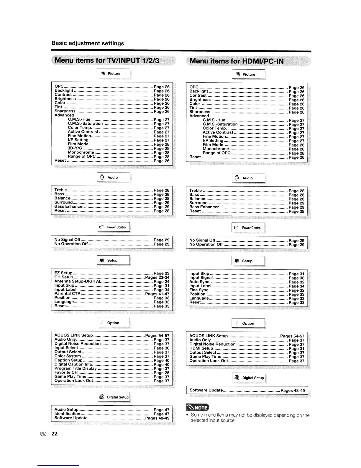 Some menu items may not be displayed depending on the