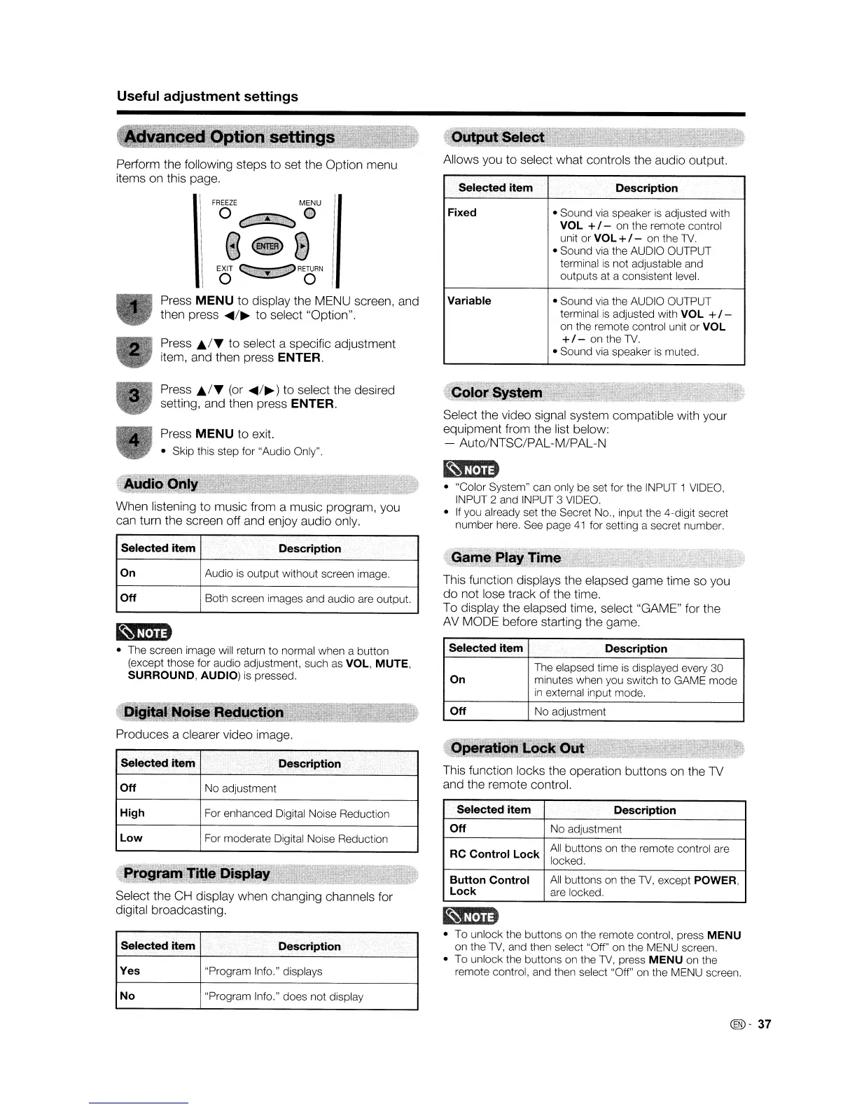 (except those for audio adjustment, such
