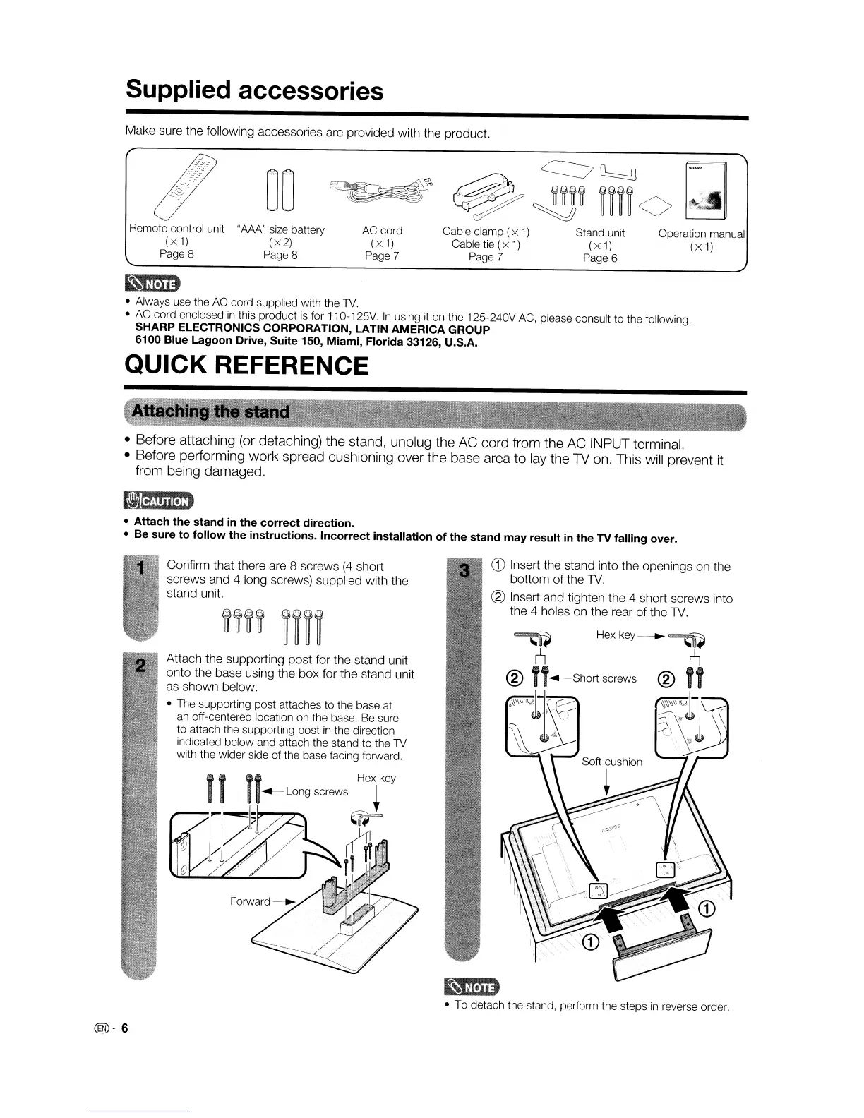 • Before attaching (or detaching) the stand, unplug the AC cord from the AC INPUT terminal.