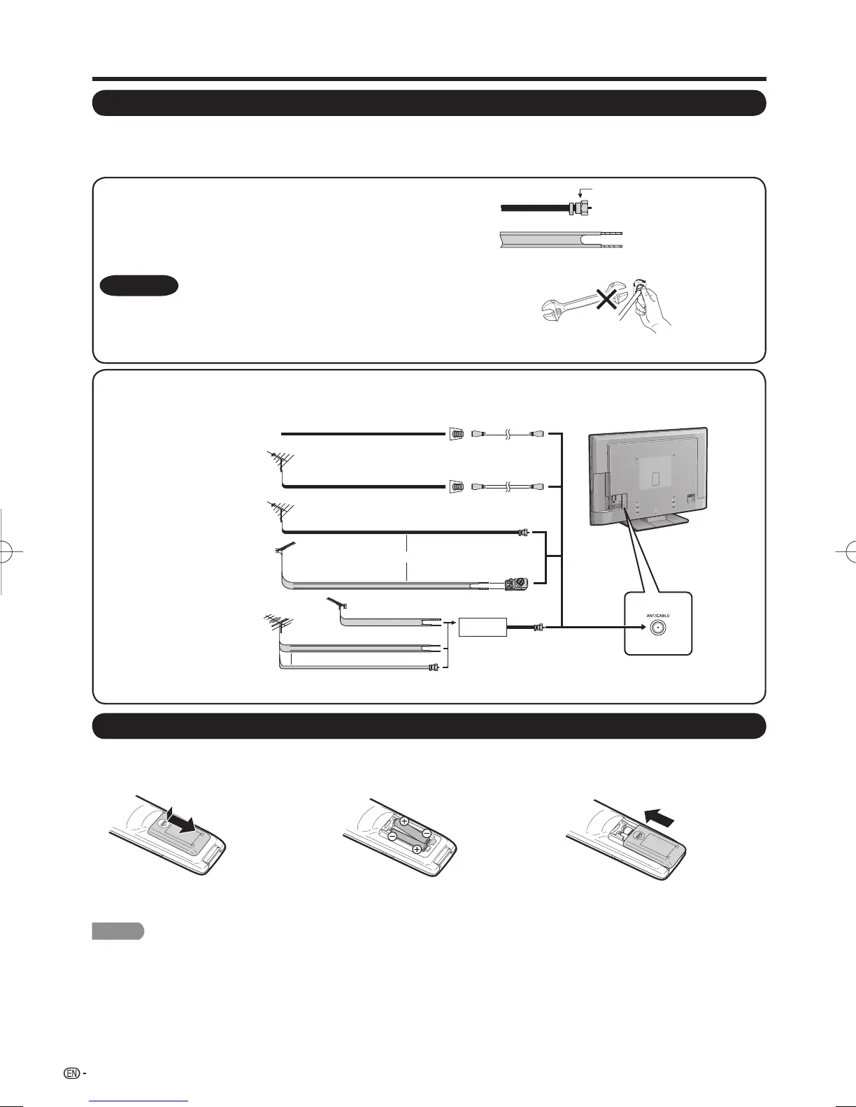 • Connect the antenna cable to the TV using one of the methods in the illustration as shown (