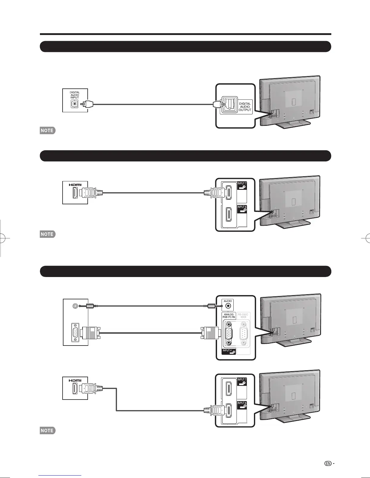 • Depending on the connected equipment, audio will not output from the DIGITAL AUDIO OUTPUT terminal in HDMI