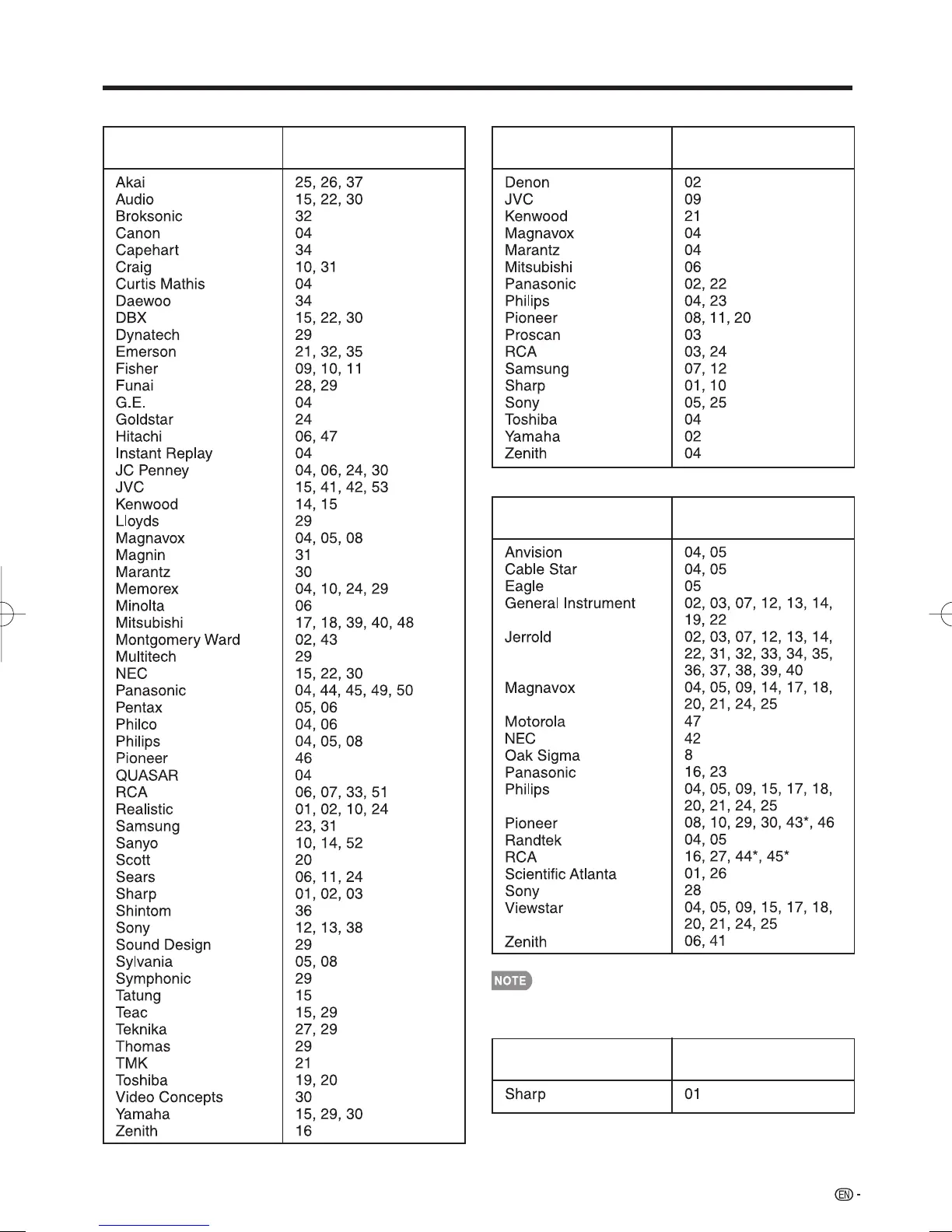 CATV codes.