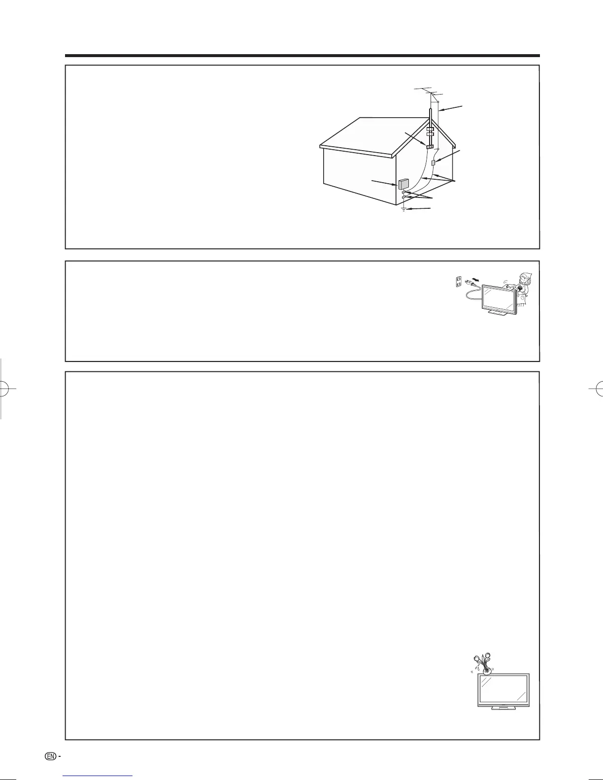 • Lightning — For added protection for this television equipment during a lightning storm, or when it is left unattended and