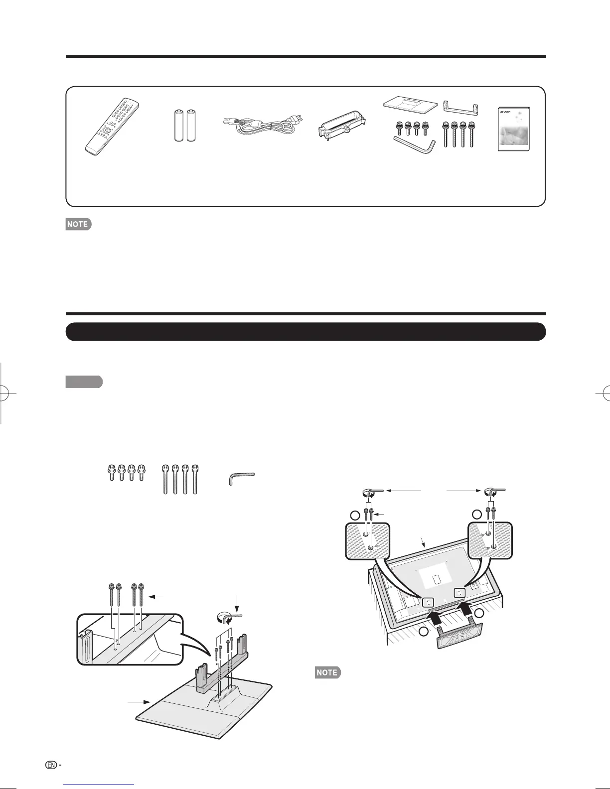 • Be sure to follow the instructions. Incorrect installation of the stand may result in the TV falling over.