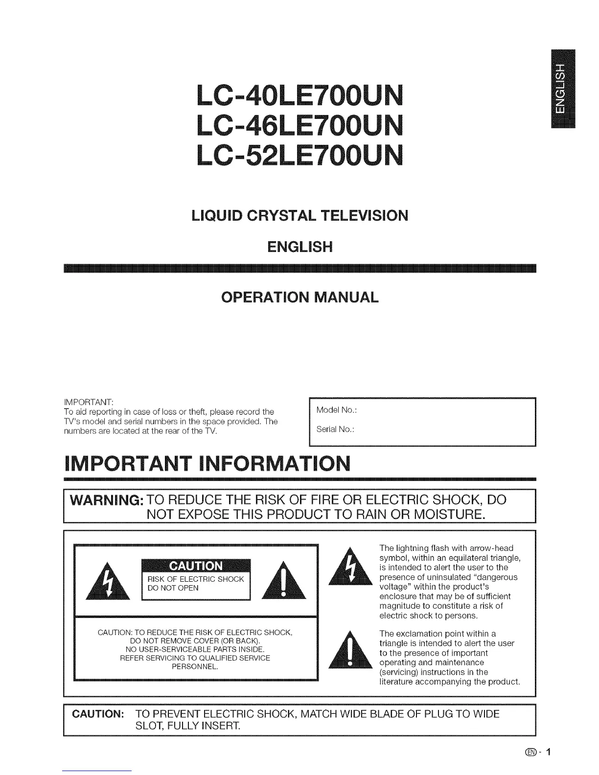 WARNING: TO REDUCE THE RISK OF FIRE OR ELECTRIC SHOCK, DO