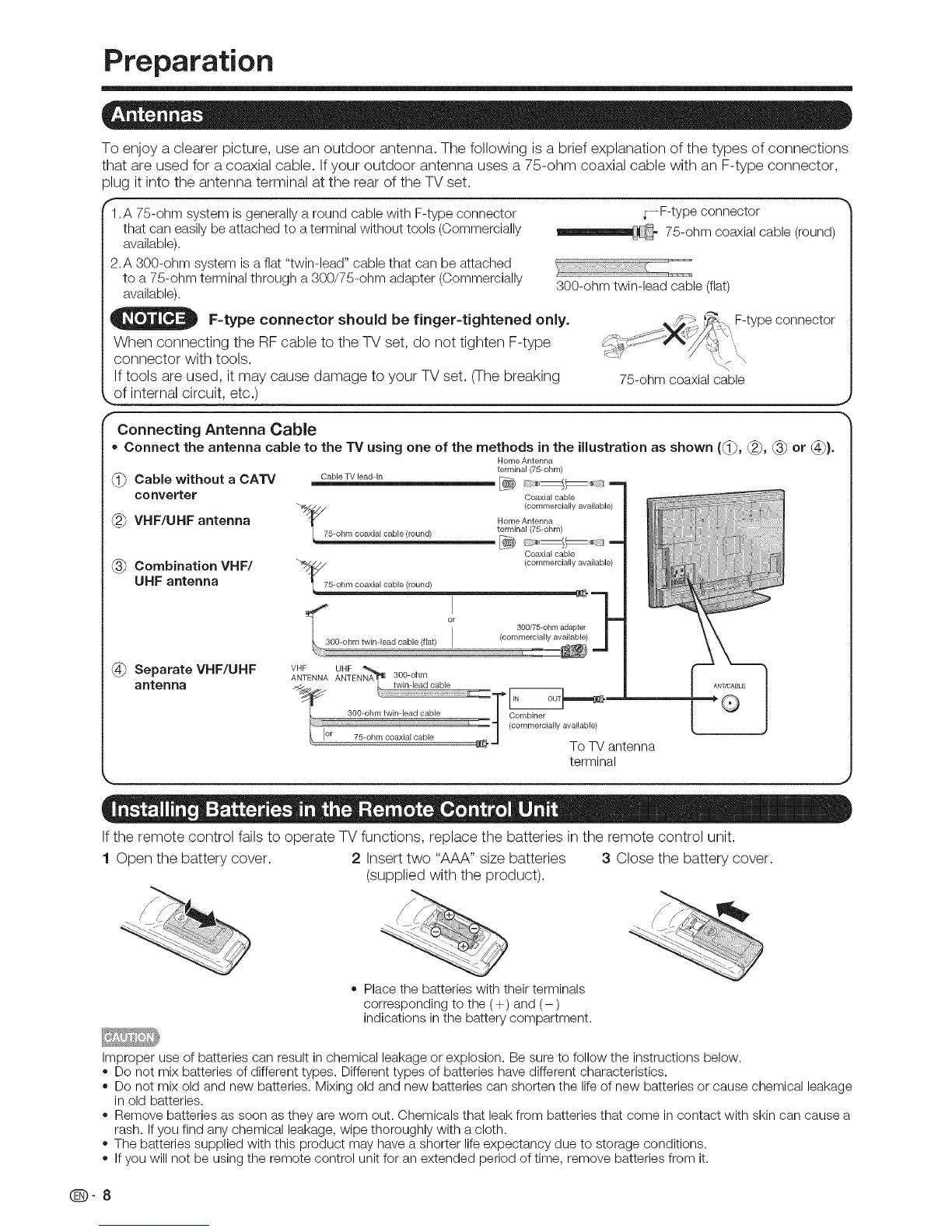 If tools are used, it may cause damage to your TV set. (The breaking 75-ohm coaxial cable