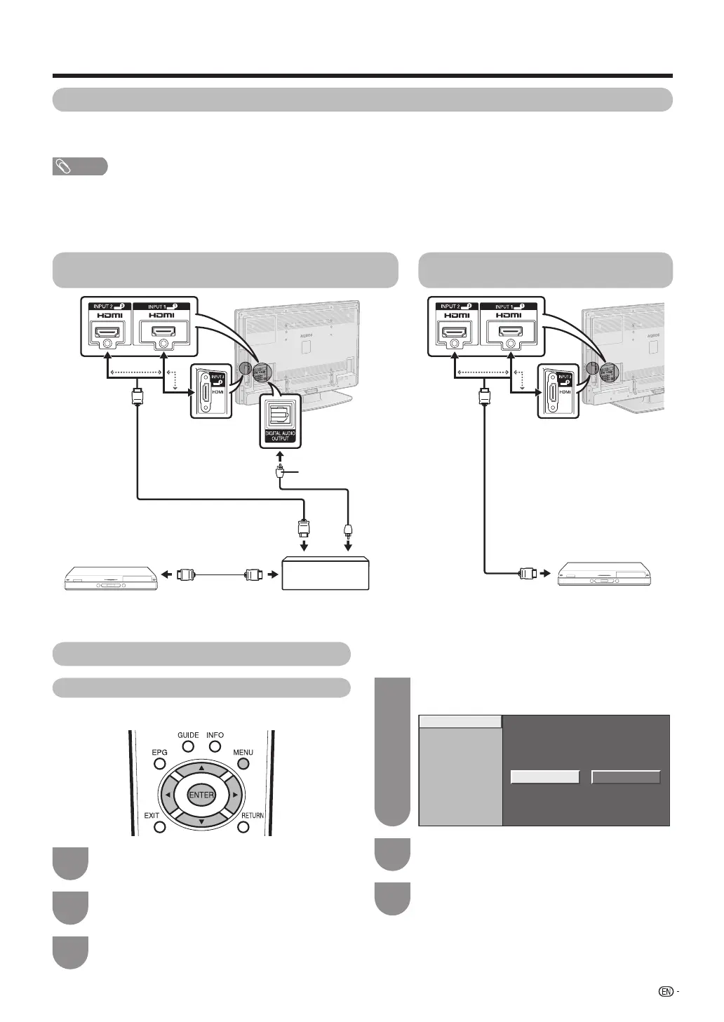 First connect the AQUOS AUDIO speaker system or an AQUOS BD Player/AQUOS Recorder that supports the