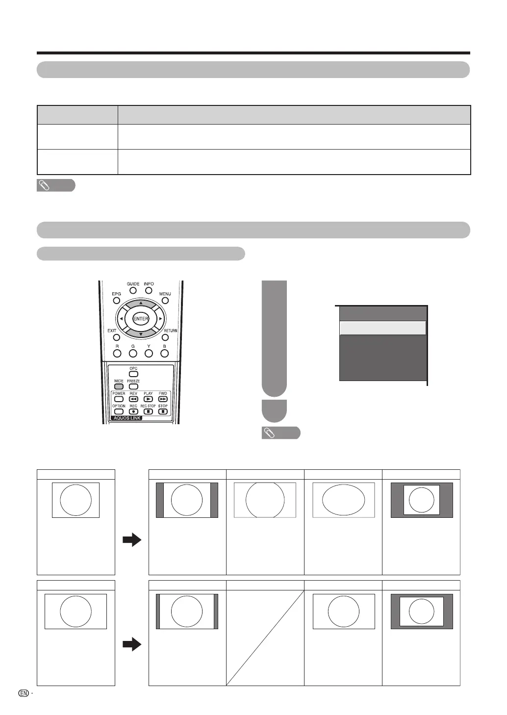 • Selectable screen size may vary with input signal type.