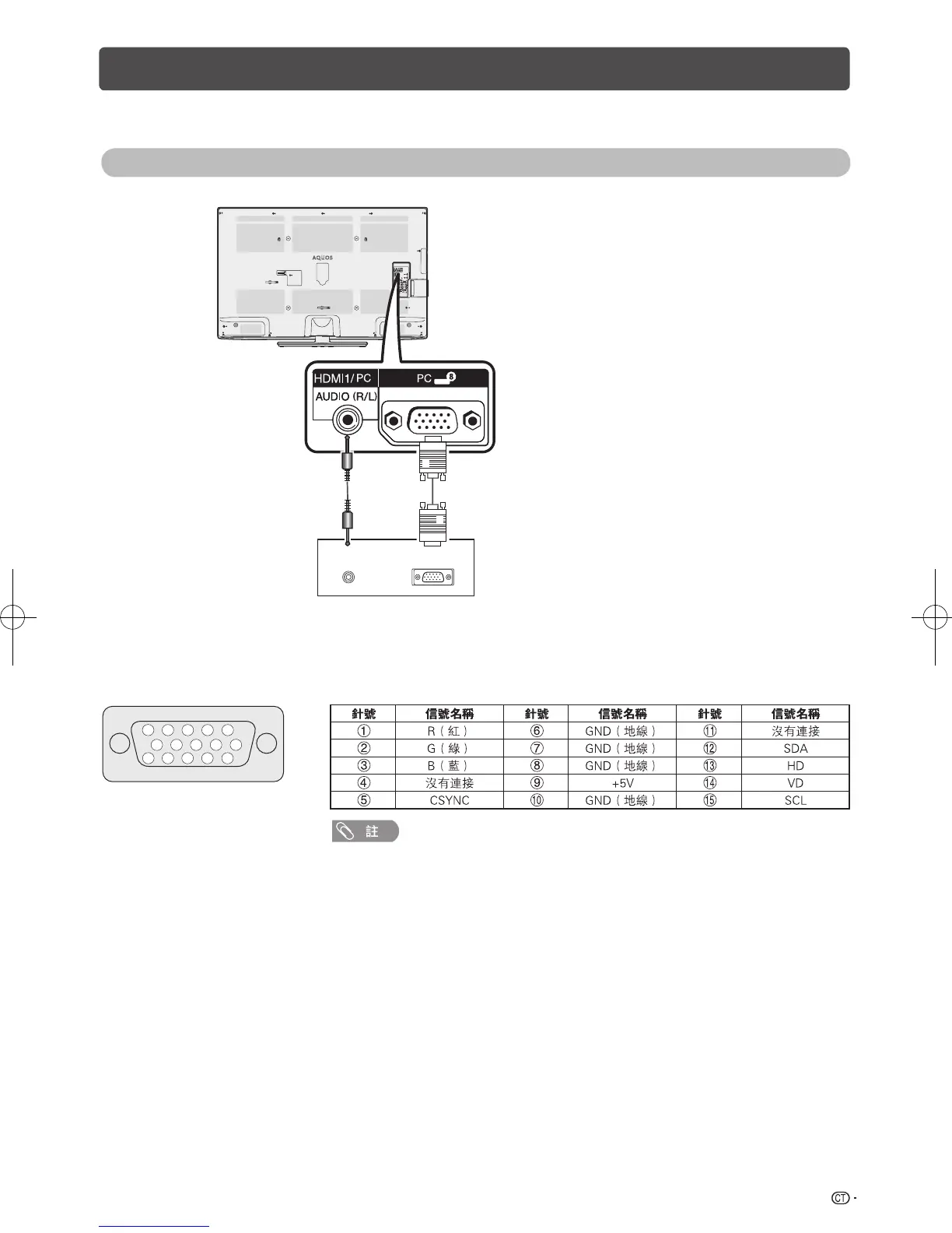 15- 針小型 D-sub 連接器的信號名稱