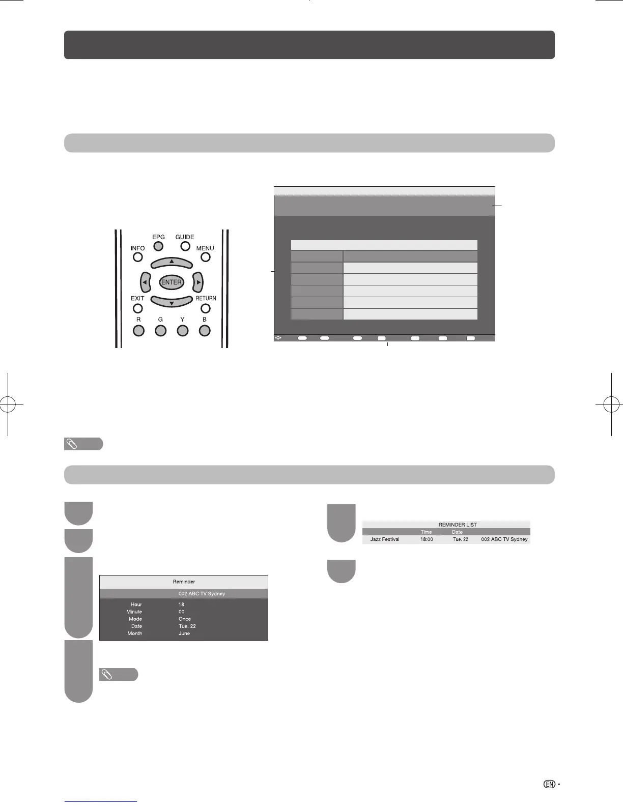 An “EPG (Electronic Programme Guide)” is a programme schedule, which is displayed on the TV screen. The