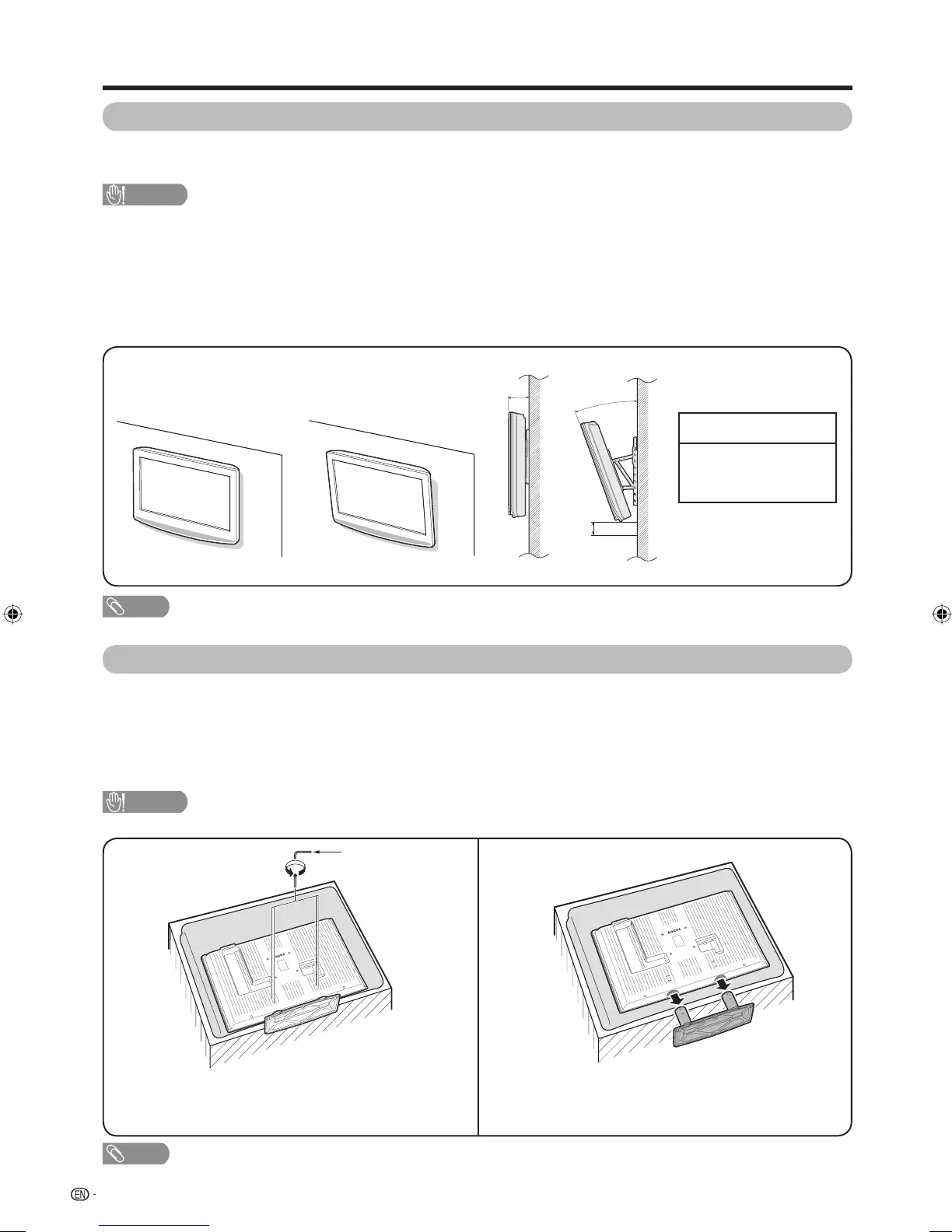• This TV should be mounted on the wall only with the AN-37AG2/AN-52AG1 (SHARP) wall mount bracket. The use