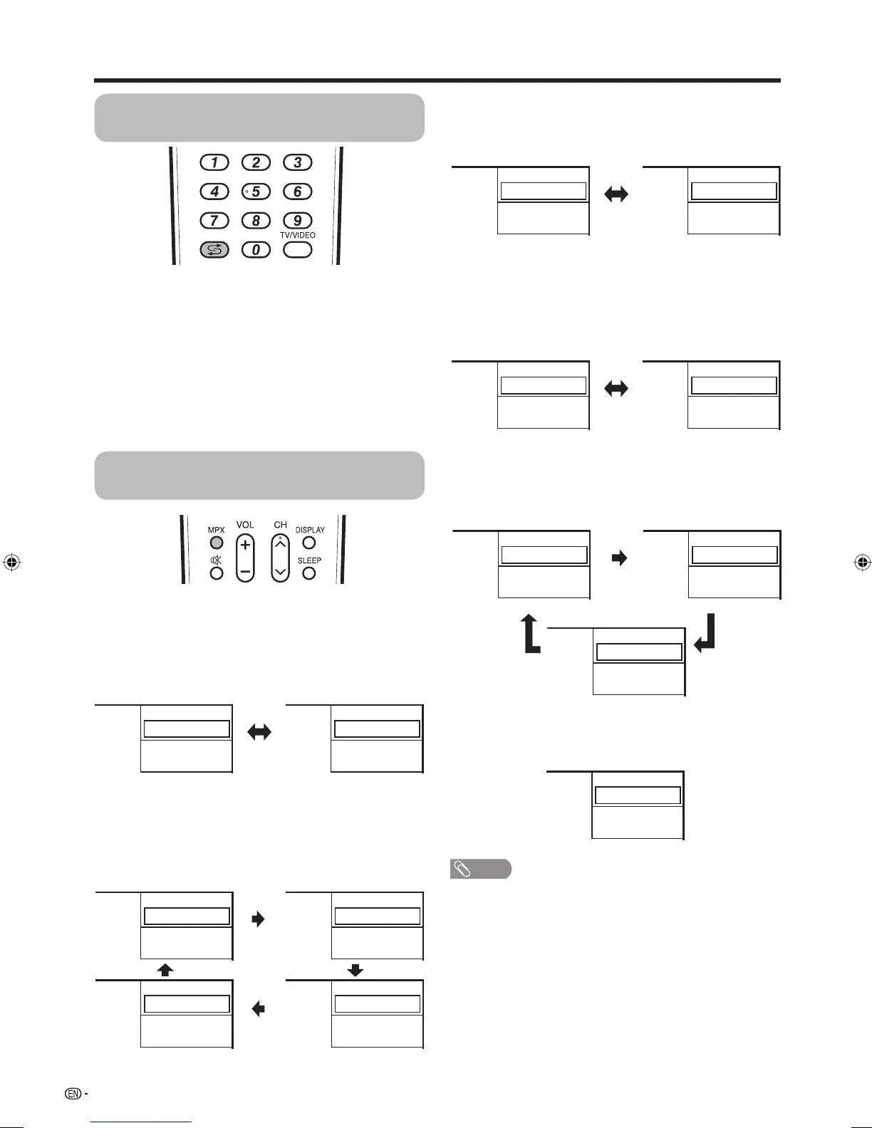 When you press MPX, “MONO” displays.