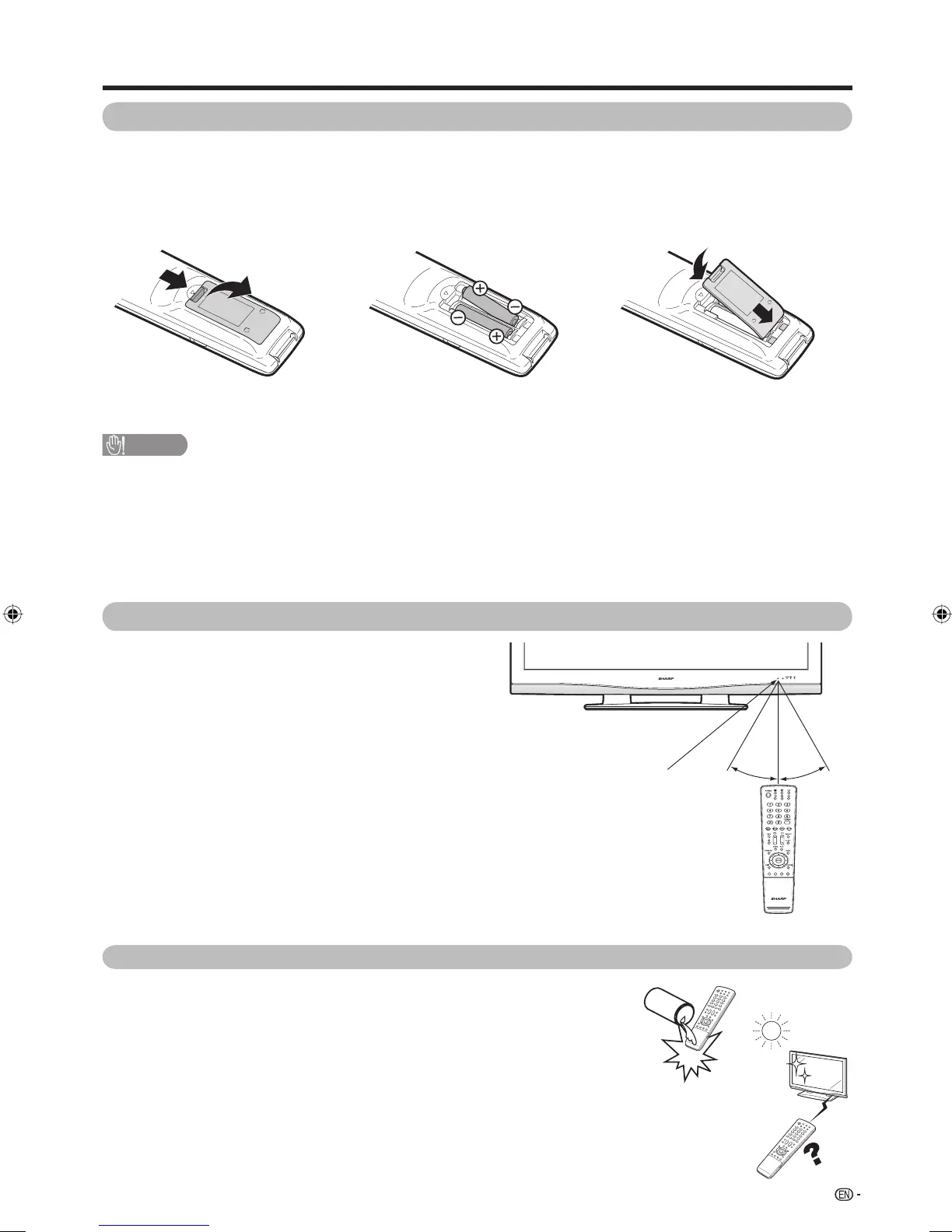 Before using the TV for the fi rst time, insert two “AAA” size batteries (supplied). When the batteries become