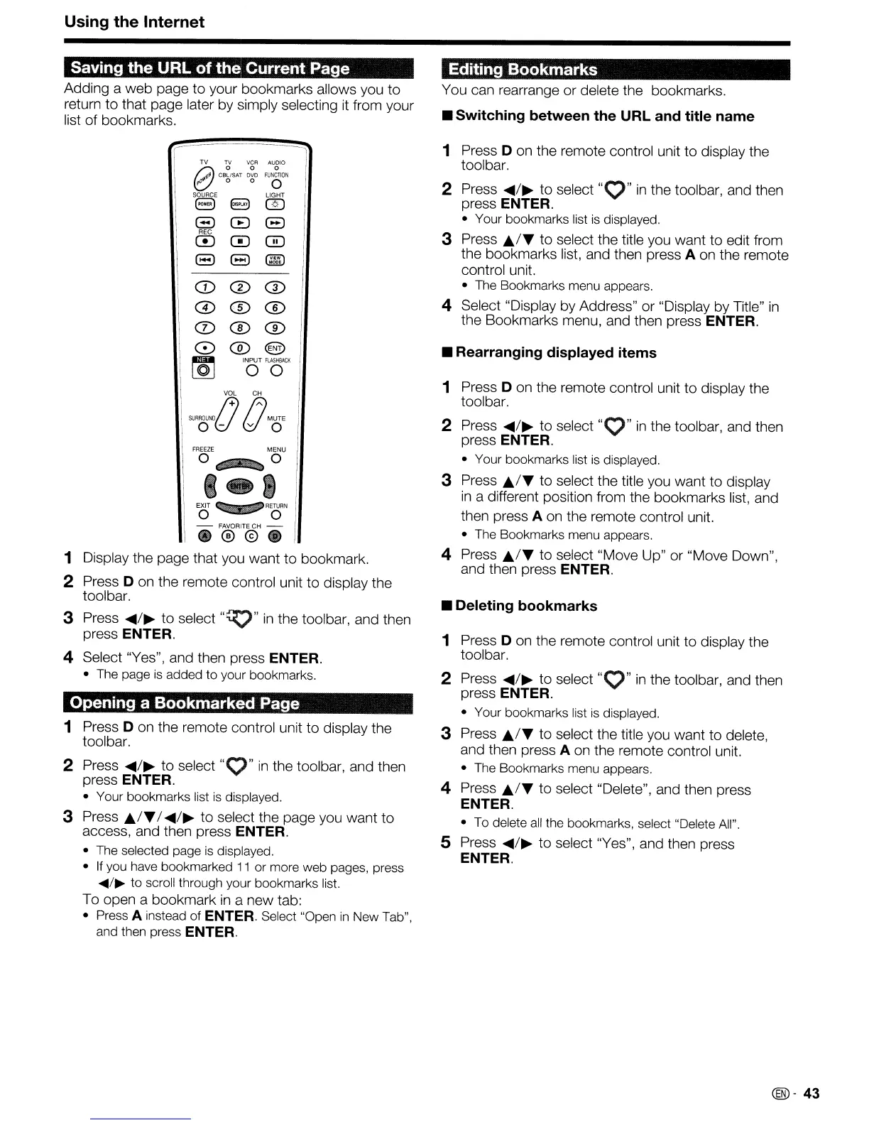 the bookmarks list, and then press A on the remote