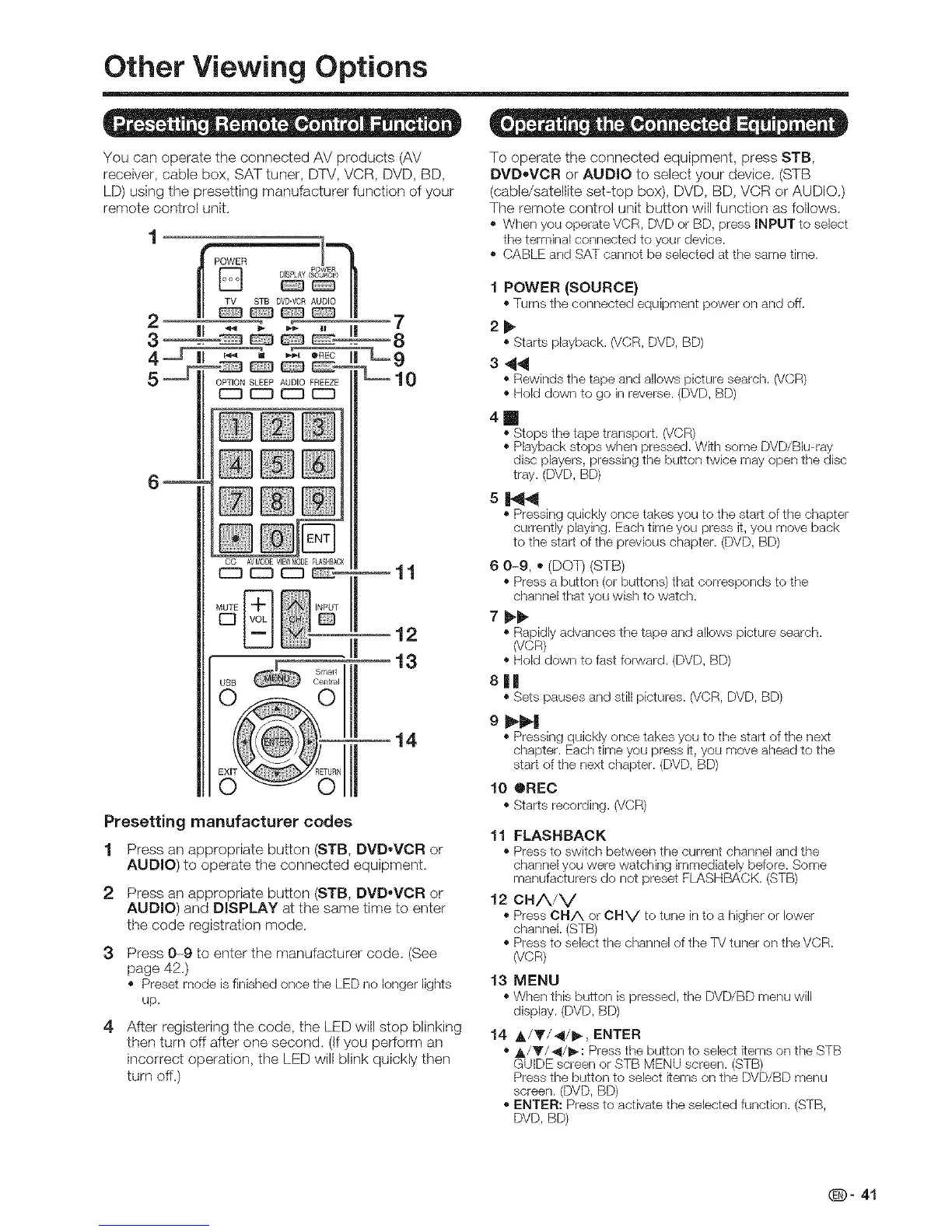 receiver, cable box, SAT tuner, DTV, VCR, DVD, BD,