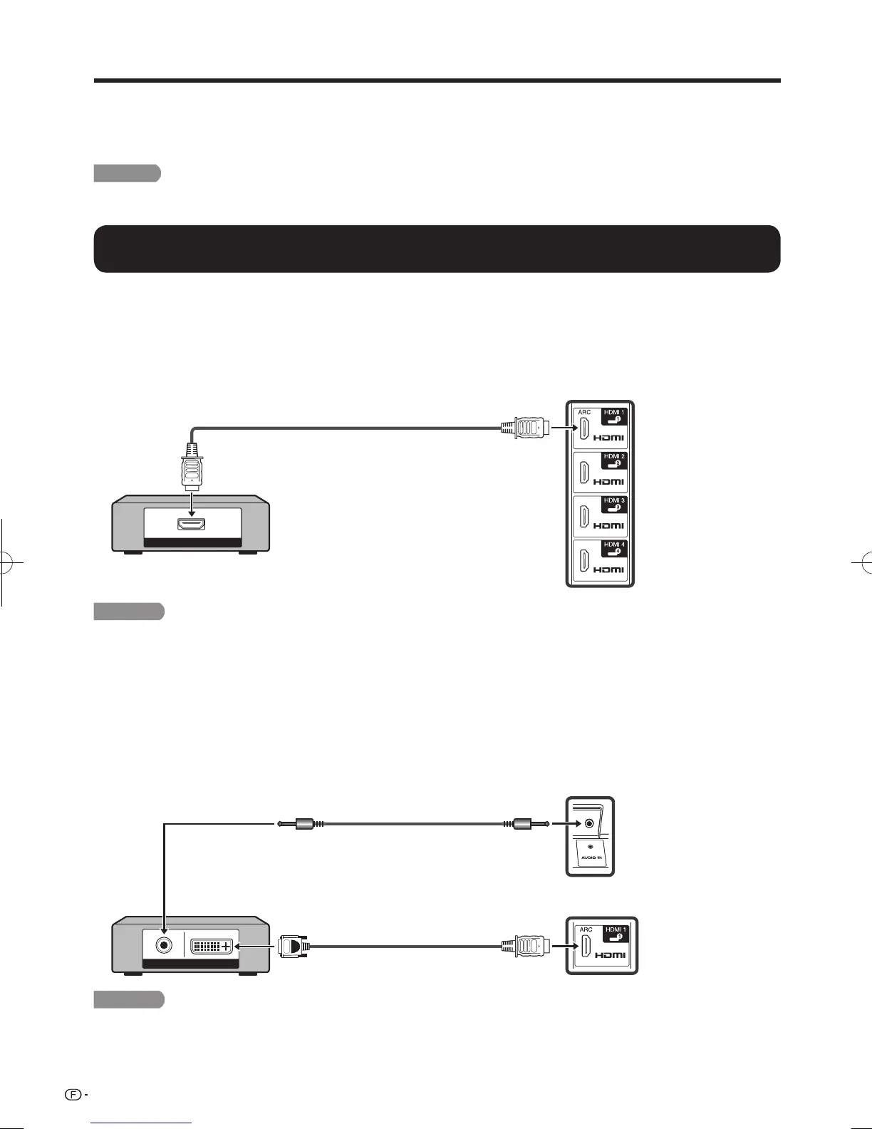 cas, outre la connexion d'un câble de conversion DVI-HDMI sur la prise HDMI 1, connectez un câble avec mini-prise stéréo