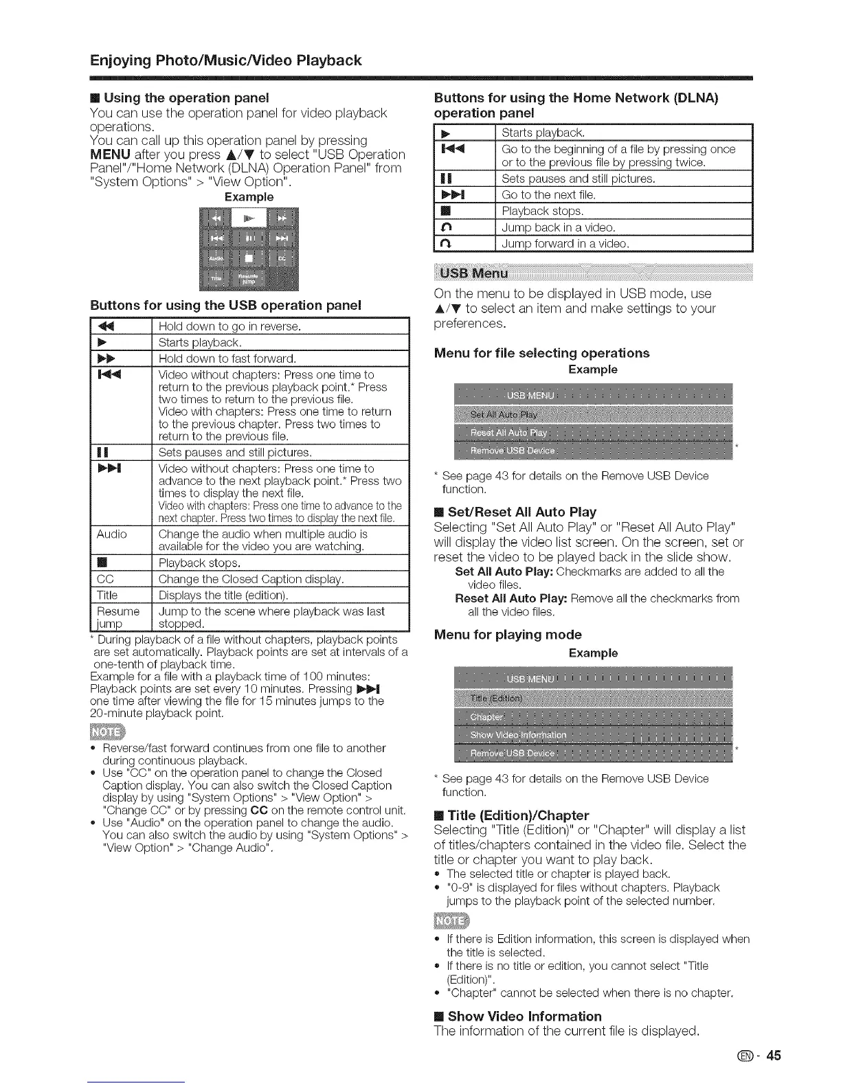 Panel"/"Home Network (DLNA) Operation Panel" from