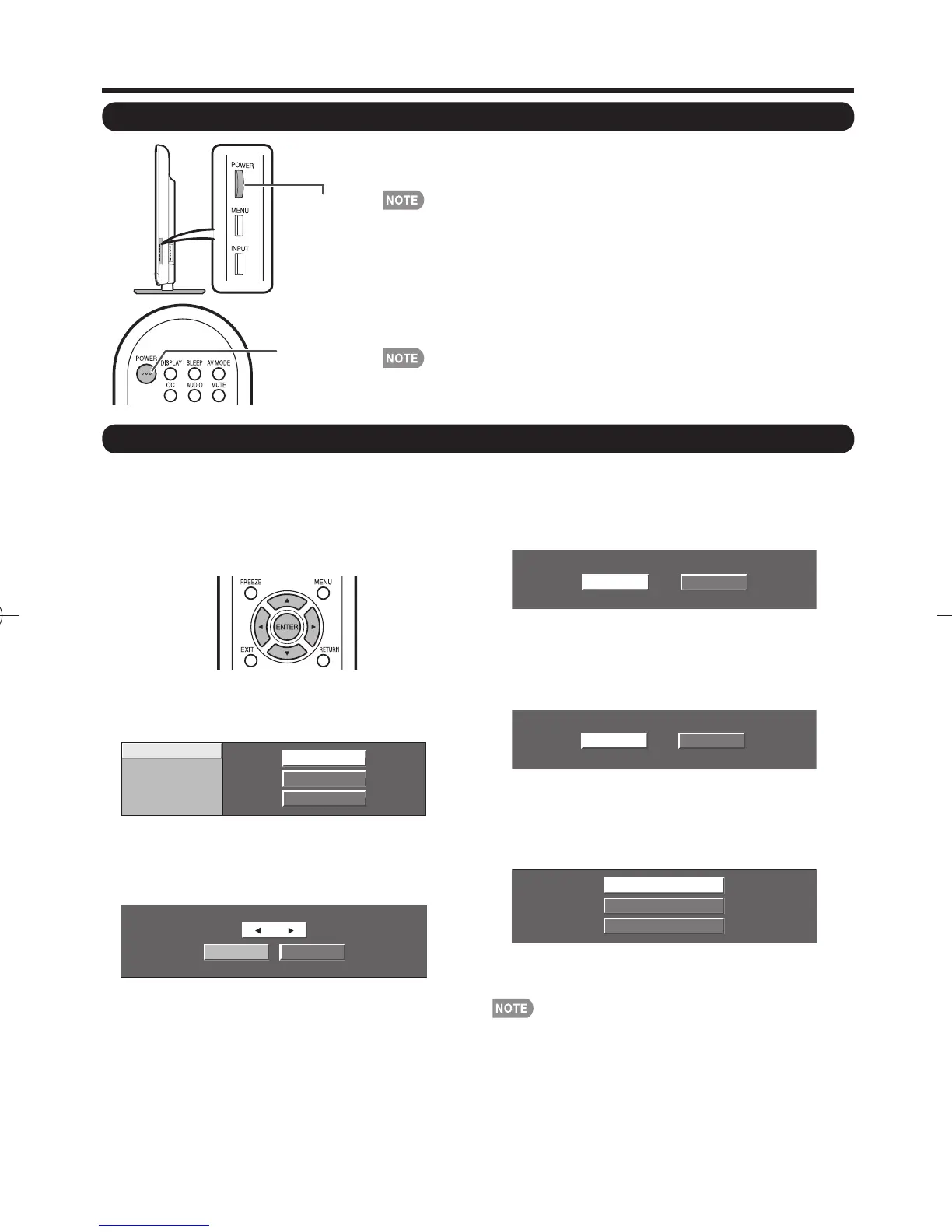 • The Initial Installation starts when the TV powers on for the fi rst time. If the