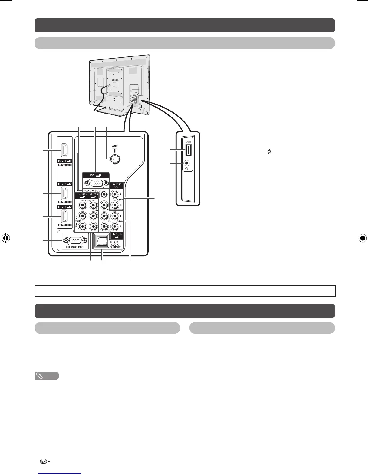 * The HDMI1 and PC terminals can both use the same audio input terminal. However, the proper item must be selected in