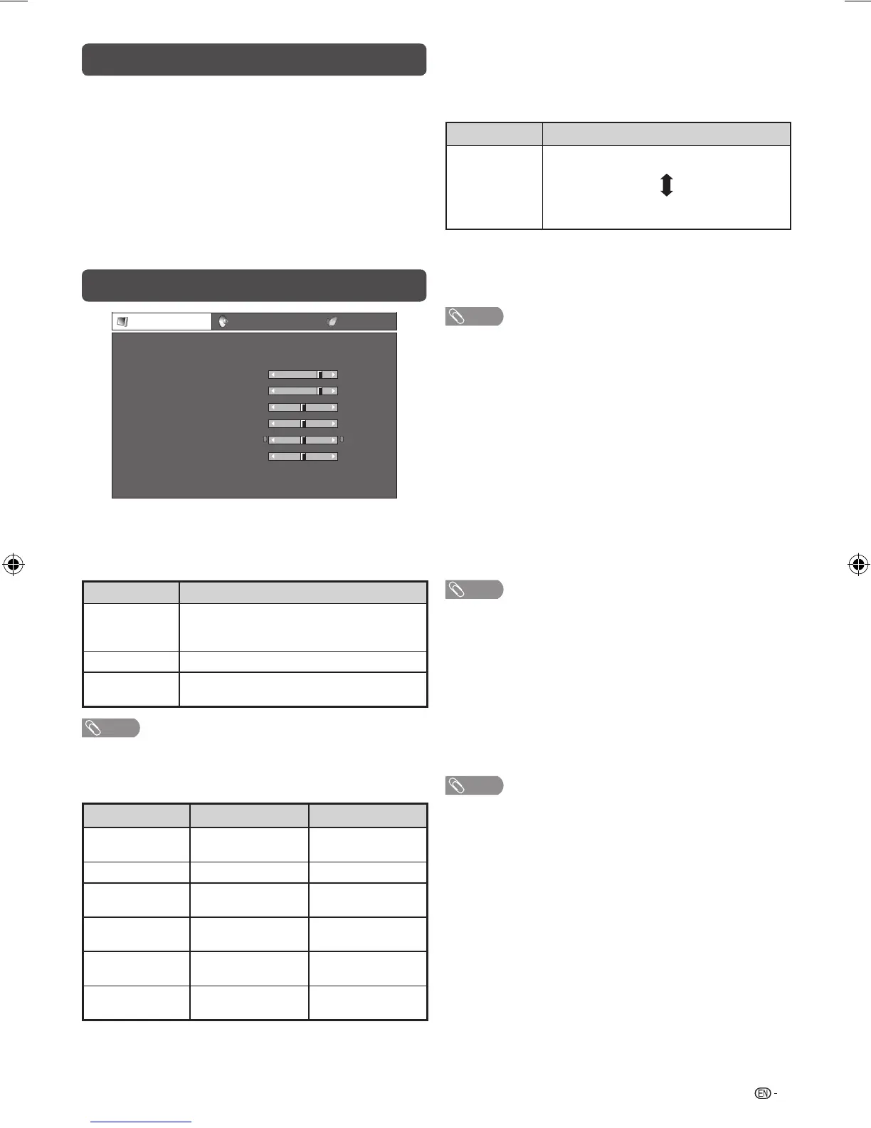 • For resetting all Picture adjustment items to factory preset