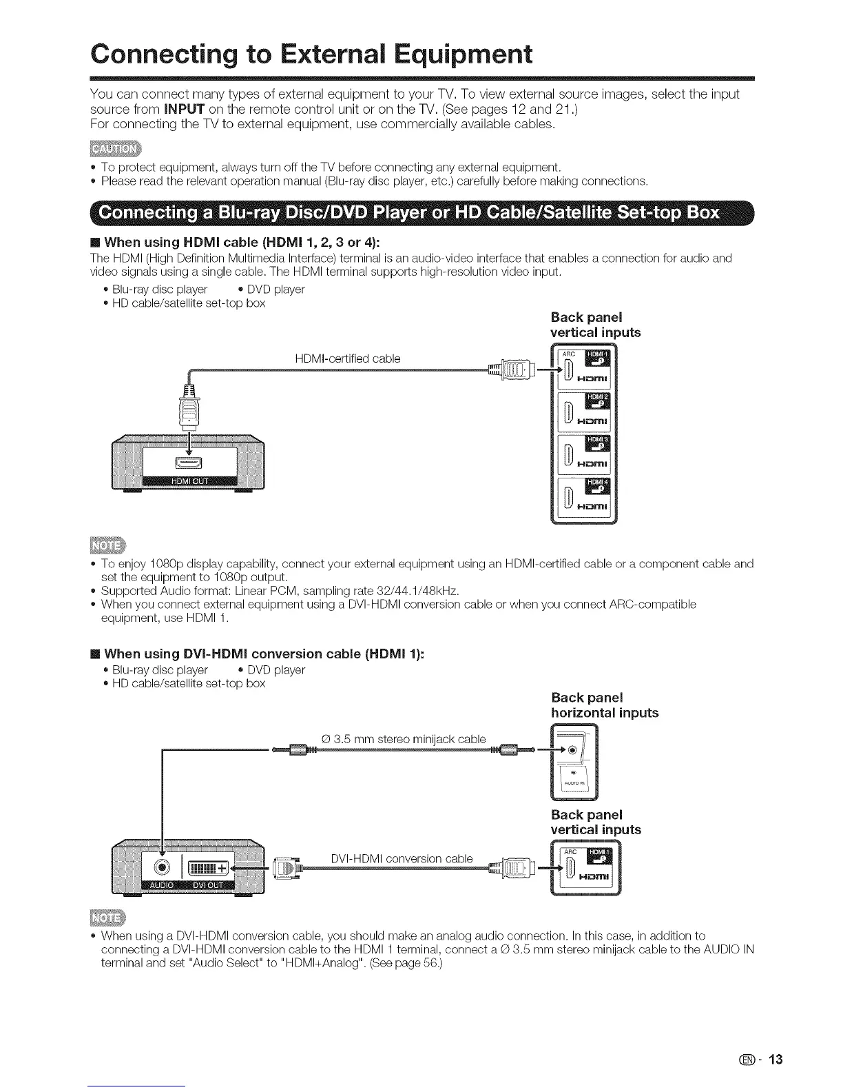 When you connect external equipment using a DVI-HDMI conversion cable or when you connect ARC-compatible