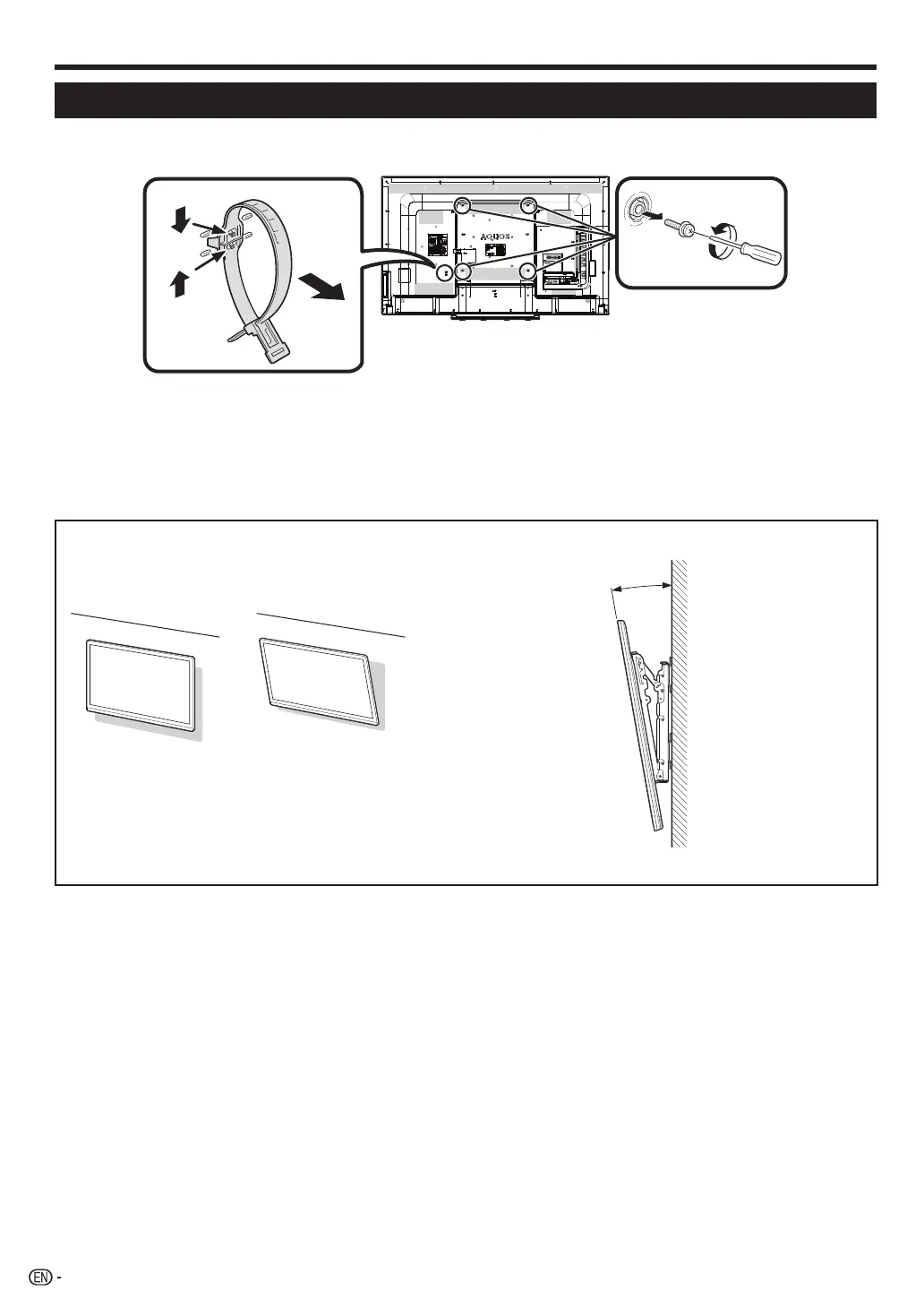 • This TV should be mounted on a wall only with the wall mount bracket available from SHARP (Page 6). The use of other