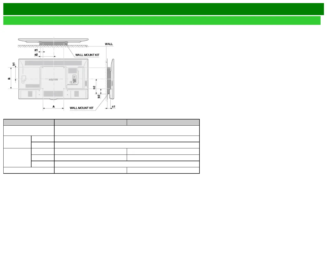 b1: Distance between the TV's center and the mounting hole