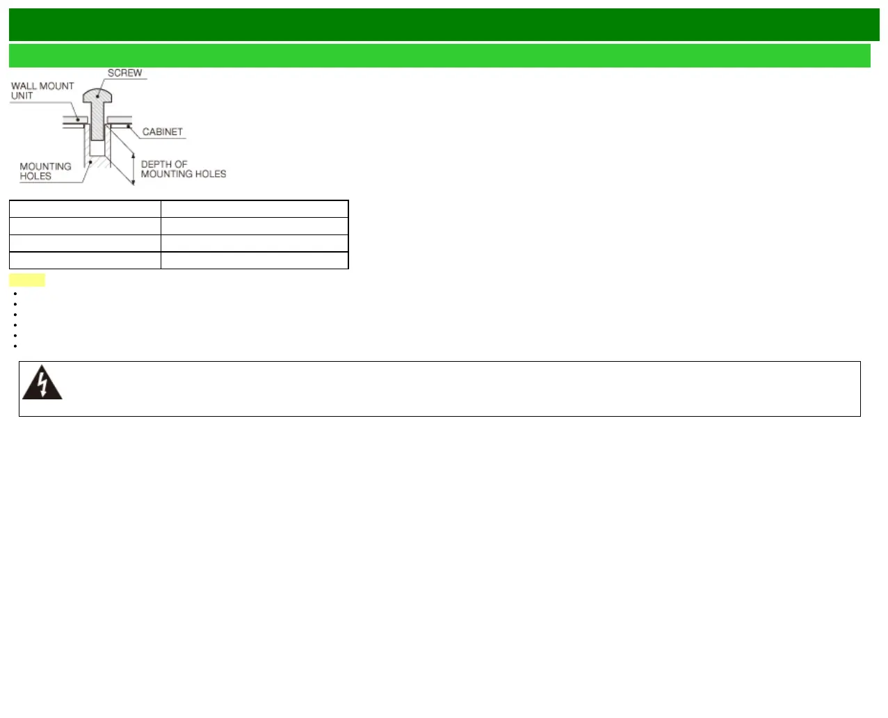 Do not install the wall mount kit while your TV is turned on. It may result in personal injury due to electric shock.