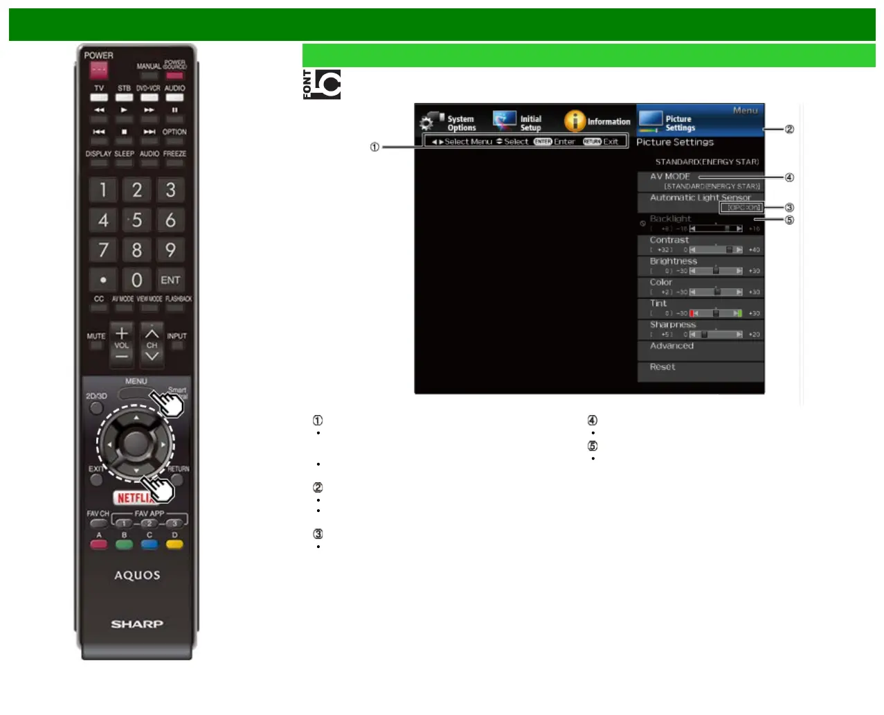 the settings for the other functions.