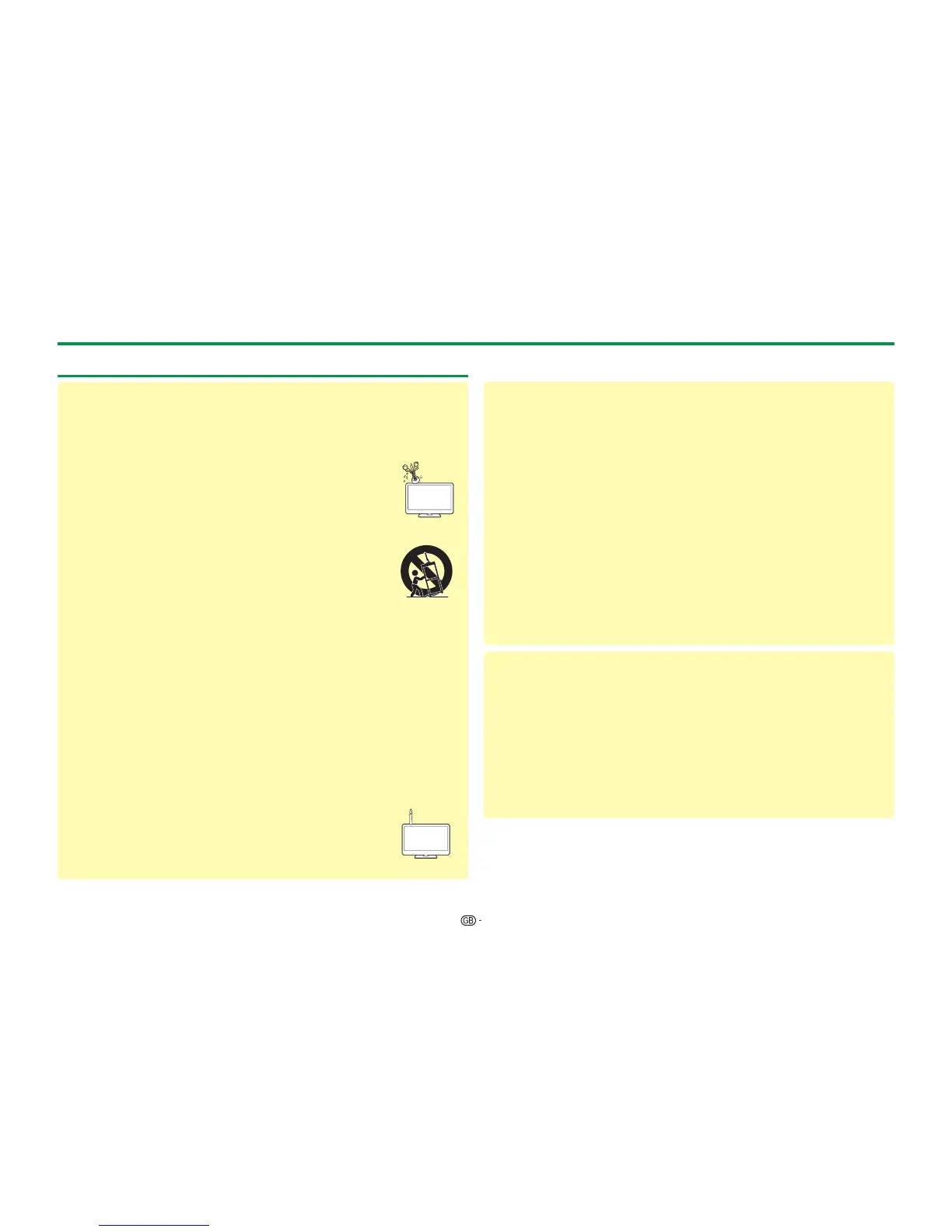 • Do not place vases or any other water-filled containers on this