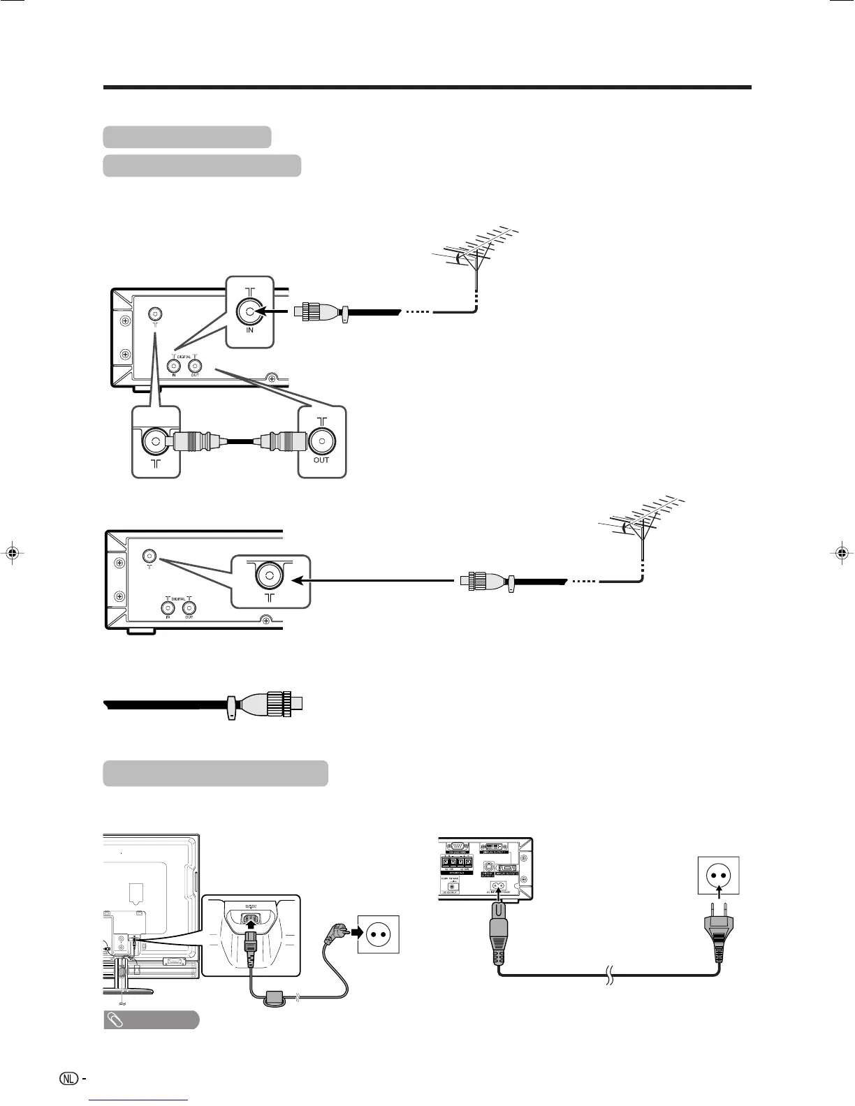 Gebruik een buitenantenne voor een optimale ontvangst. Hieronder ziet u de aansluiting van een buitenantenne