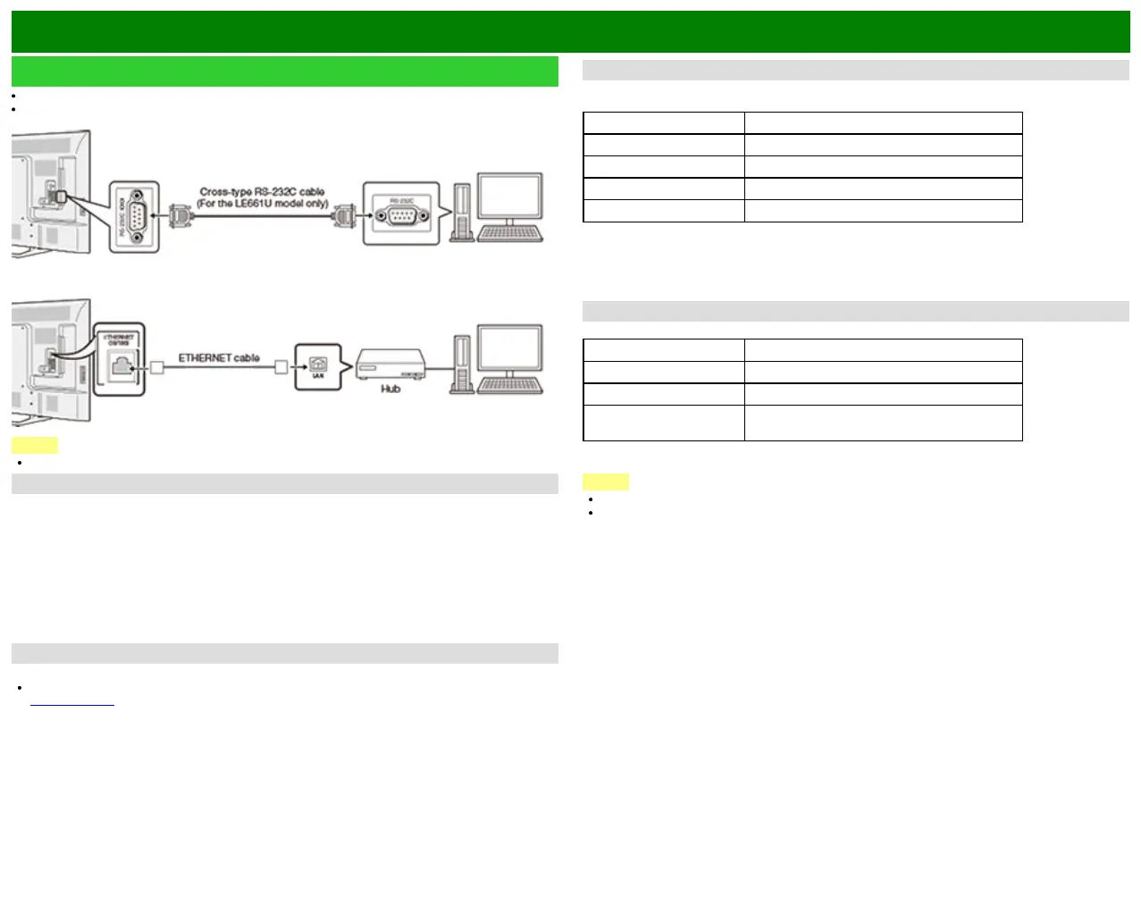 The TV can be controlled from a PC, control panels and other devices using the RS-232C or IP.