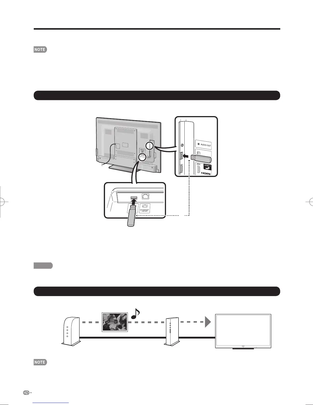 • When connecting a USB hard drive, be sure to use a hard drive with an AC adapter.