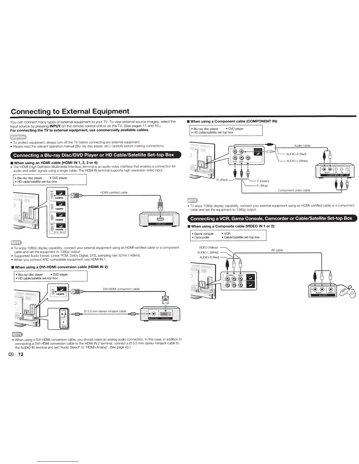 When using a Composite cable (VIDEO IN