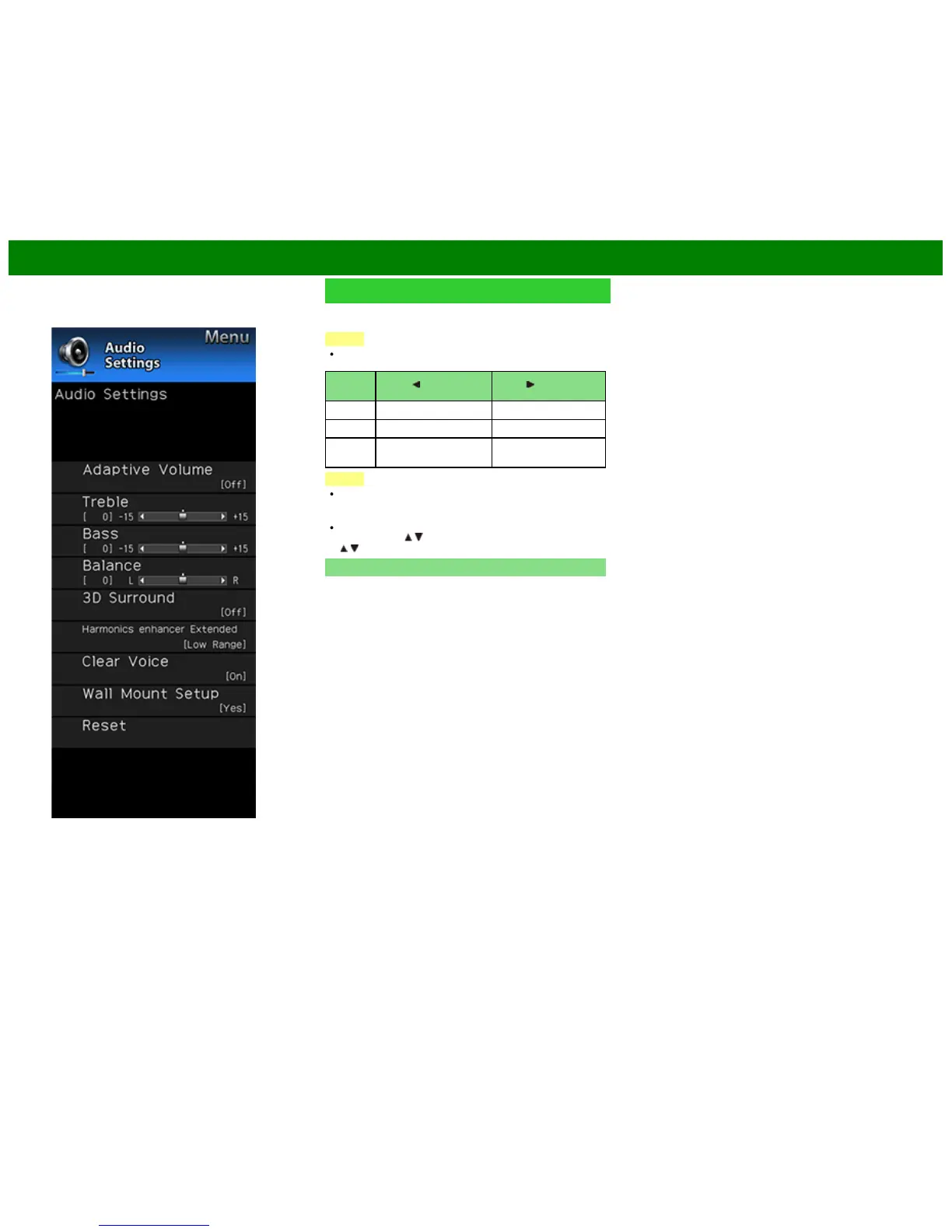 For resetting Audio adjustment items to the factory preset