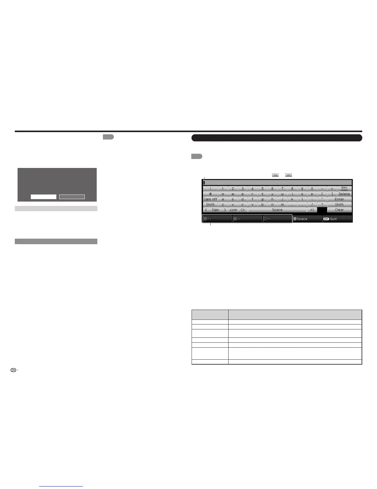 When A, B or C is pressed on the remote control while the characters to be entered in