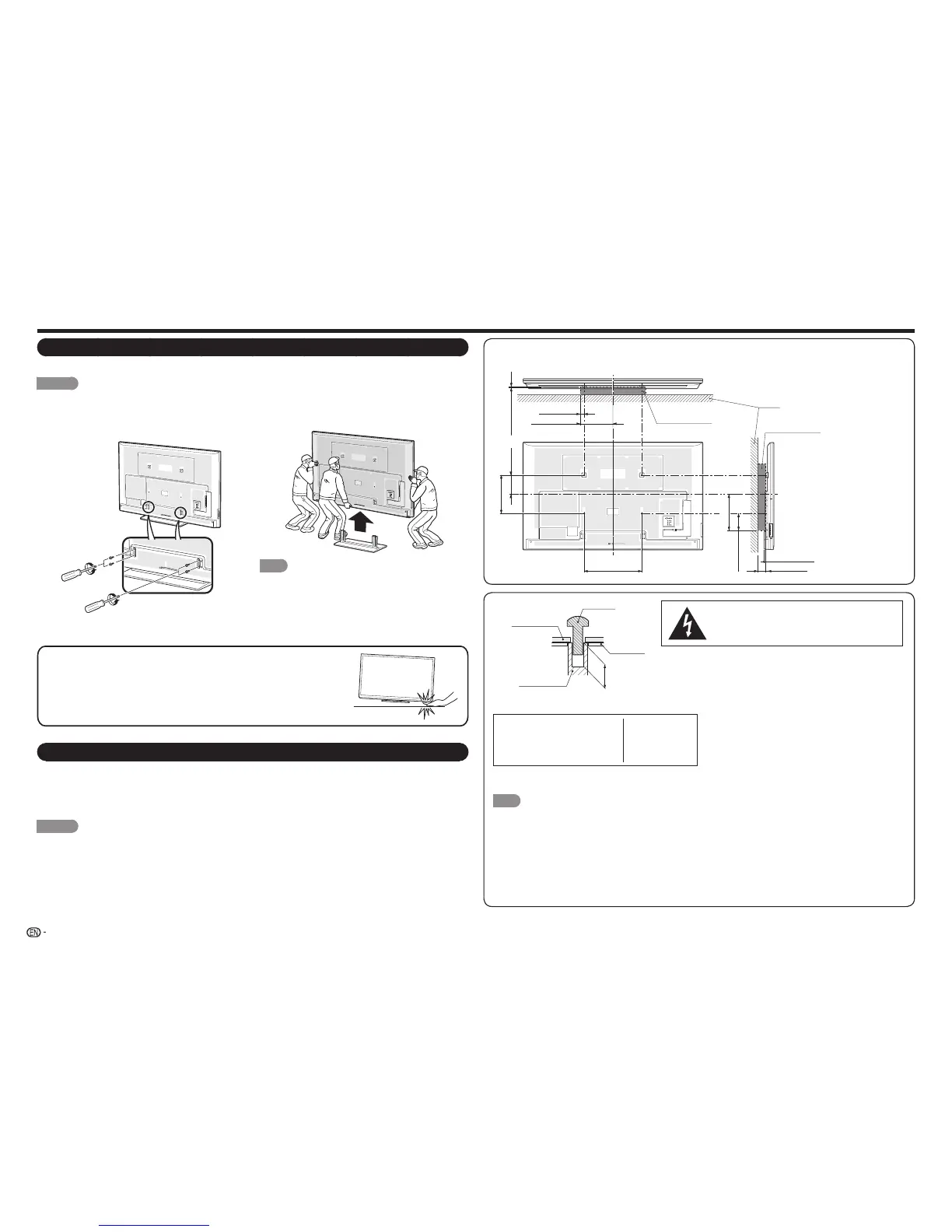 fall and result in severe personal injury. Always have two people mount the TV on a wall.