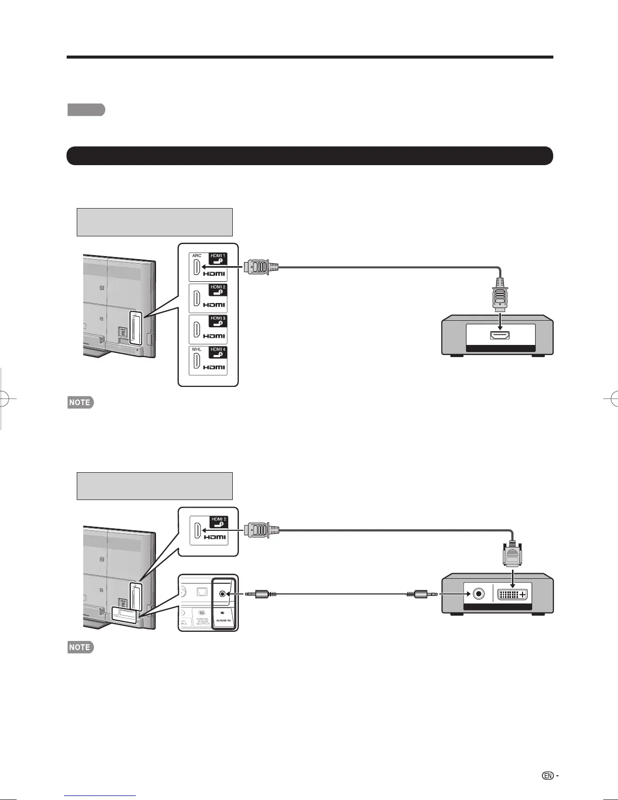 • When you connect ARC-compatible equipment, use HDMI 1.