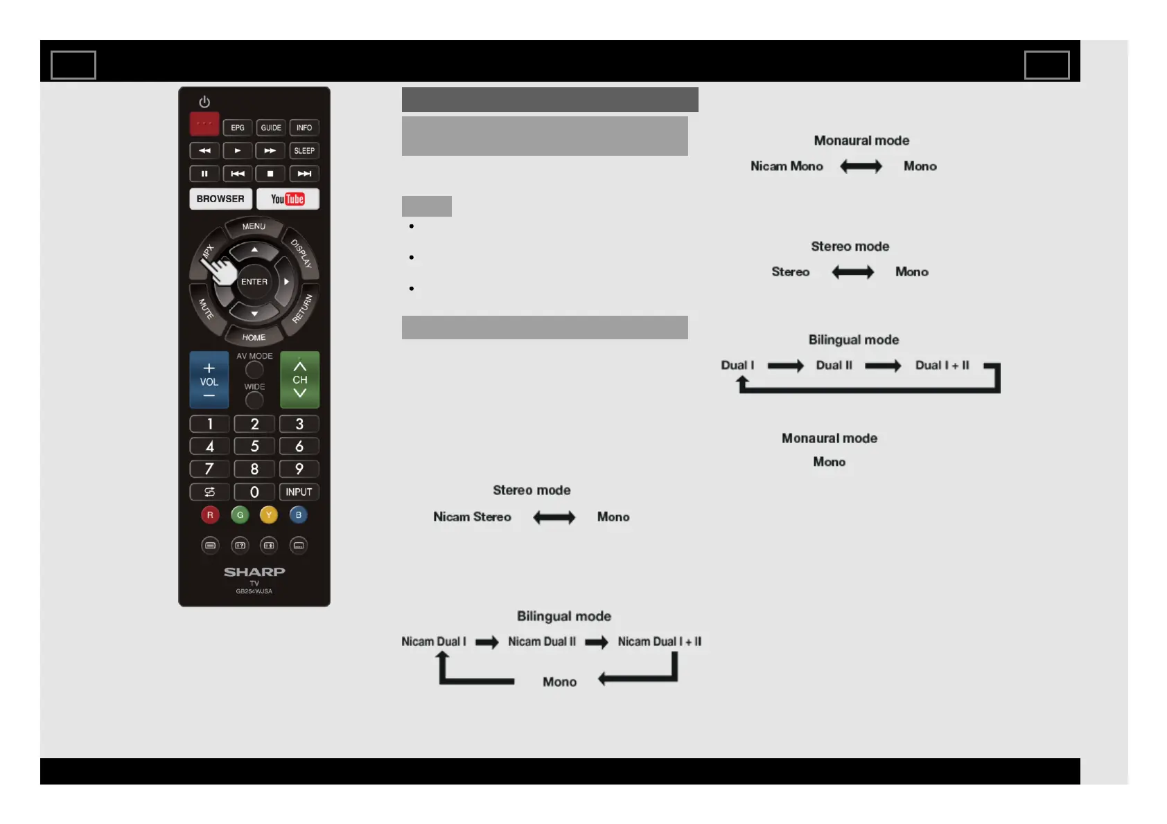 When you press MPX, “Mono” displays.