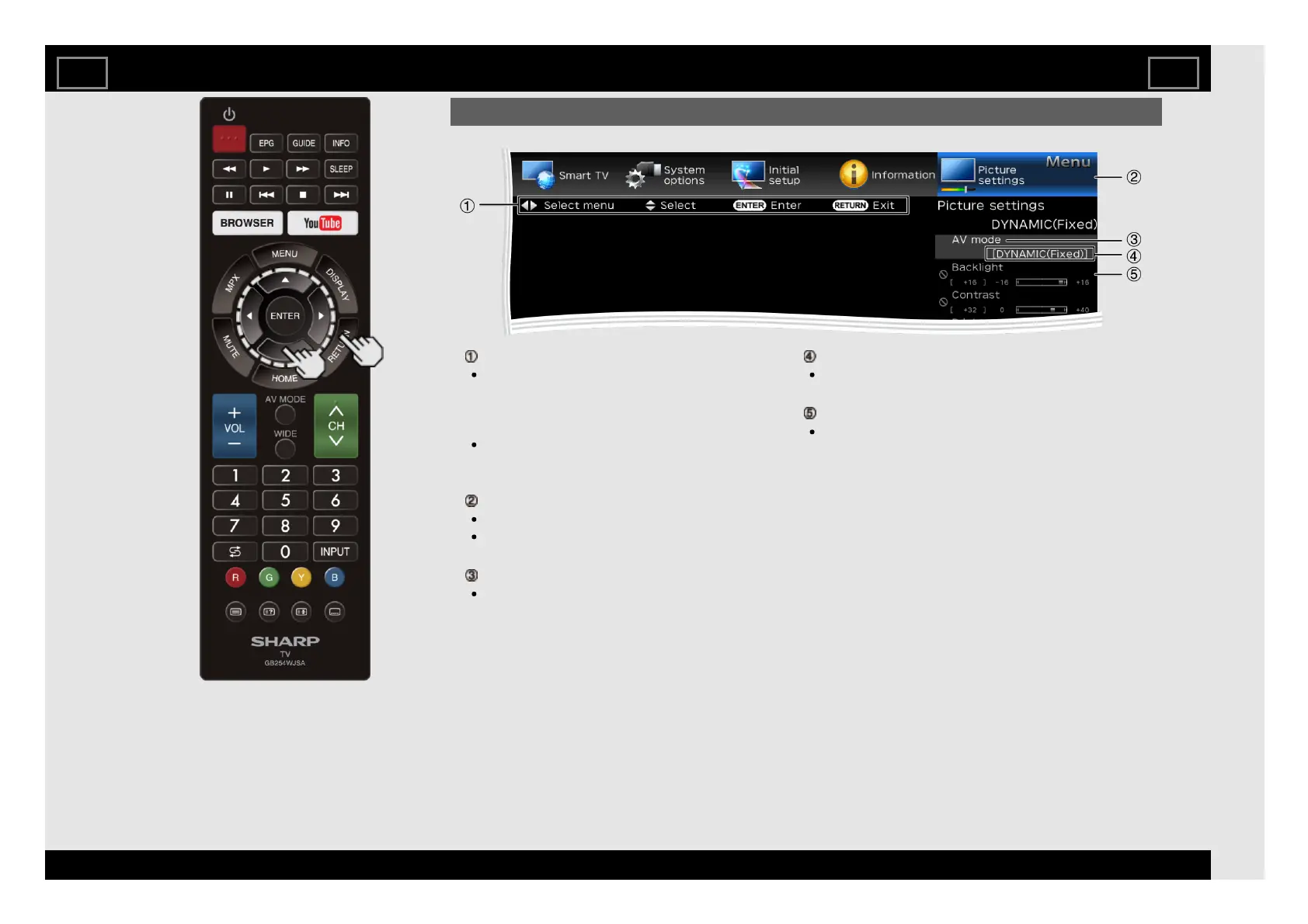Sharp Aquos LC50SA5500X - On-Screen Menu and Settings