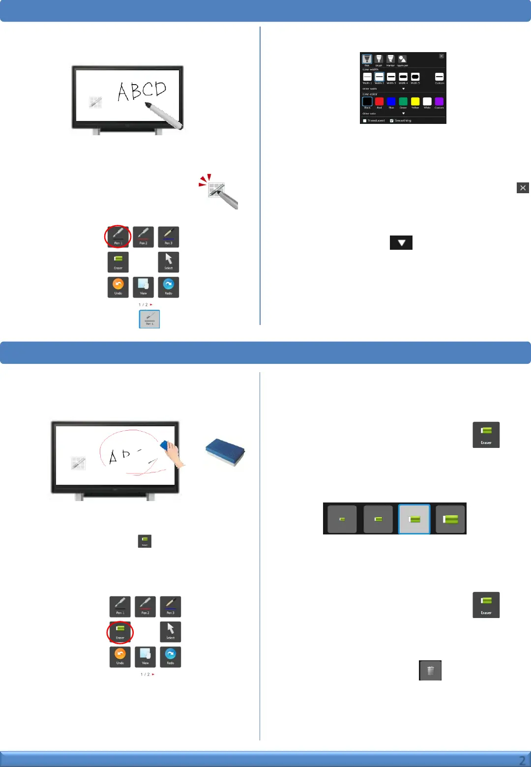 Sharp aquos PN-L603B - Draw and Edit Characters on White Board; Draw Characters with Pen; Change Pen Size and Color; Erase Characters