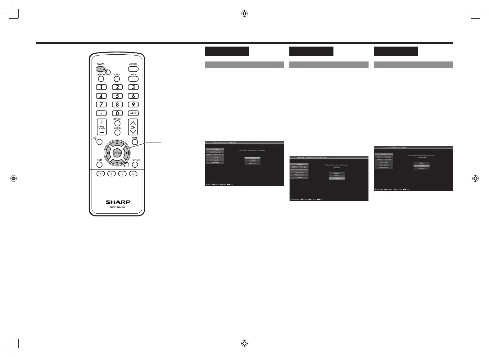 Select from among 3 languages: English,
