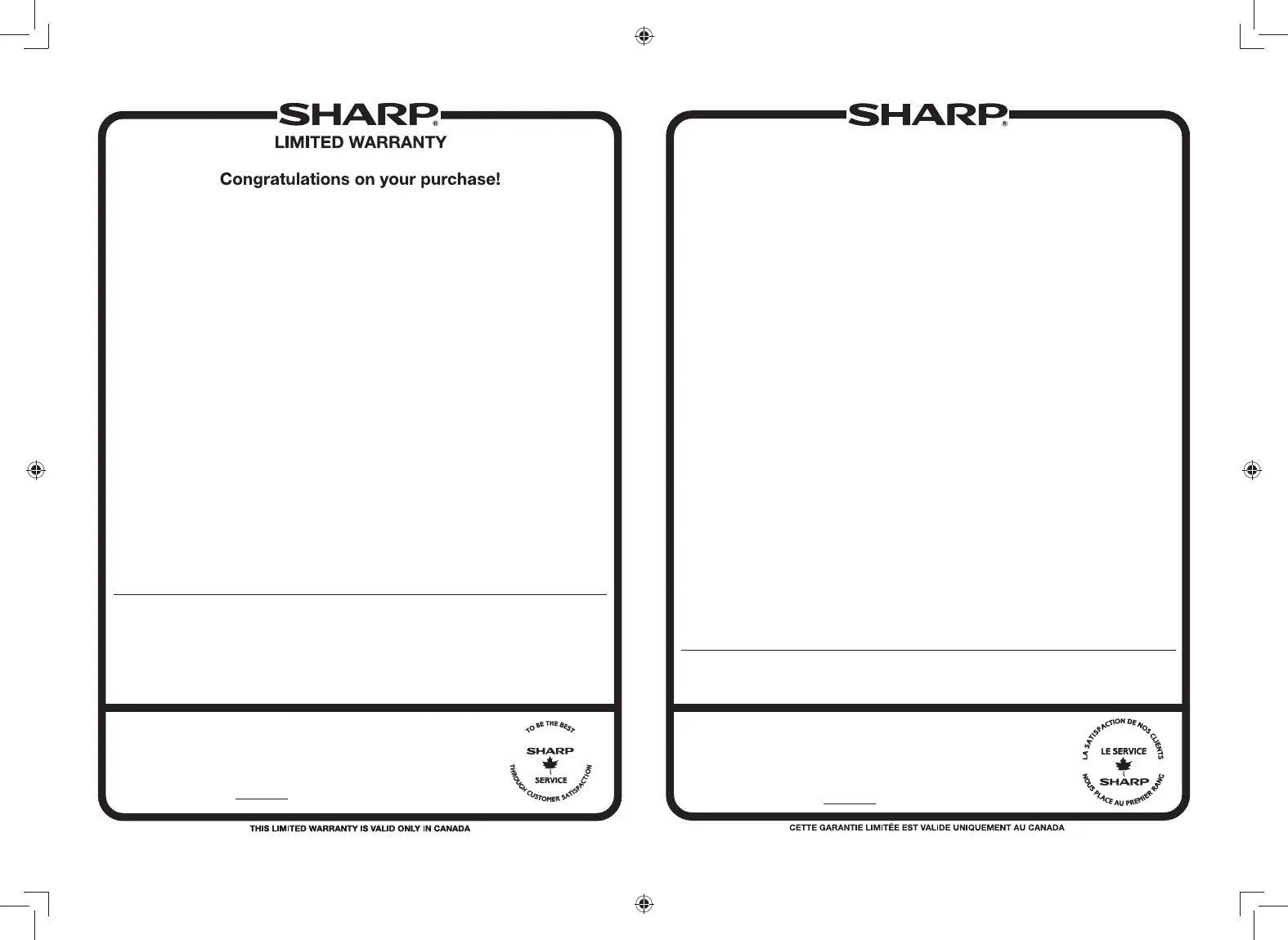 (including any Sharp dealer or service centre) is authorized to extend, enlarge or transfer this warranty on behalf of Sharp. The purchaser