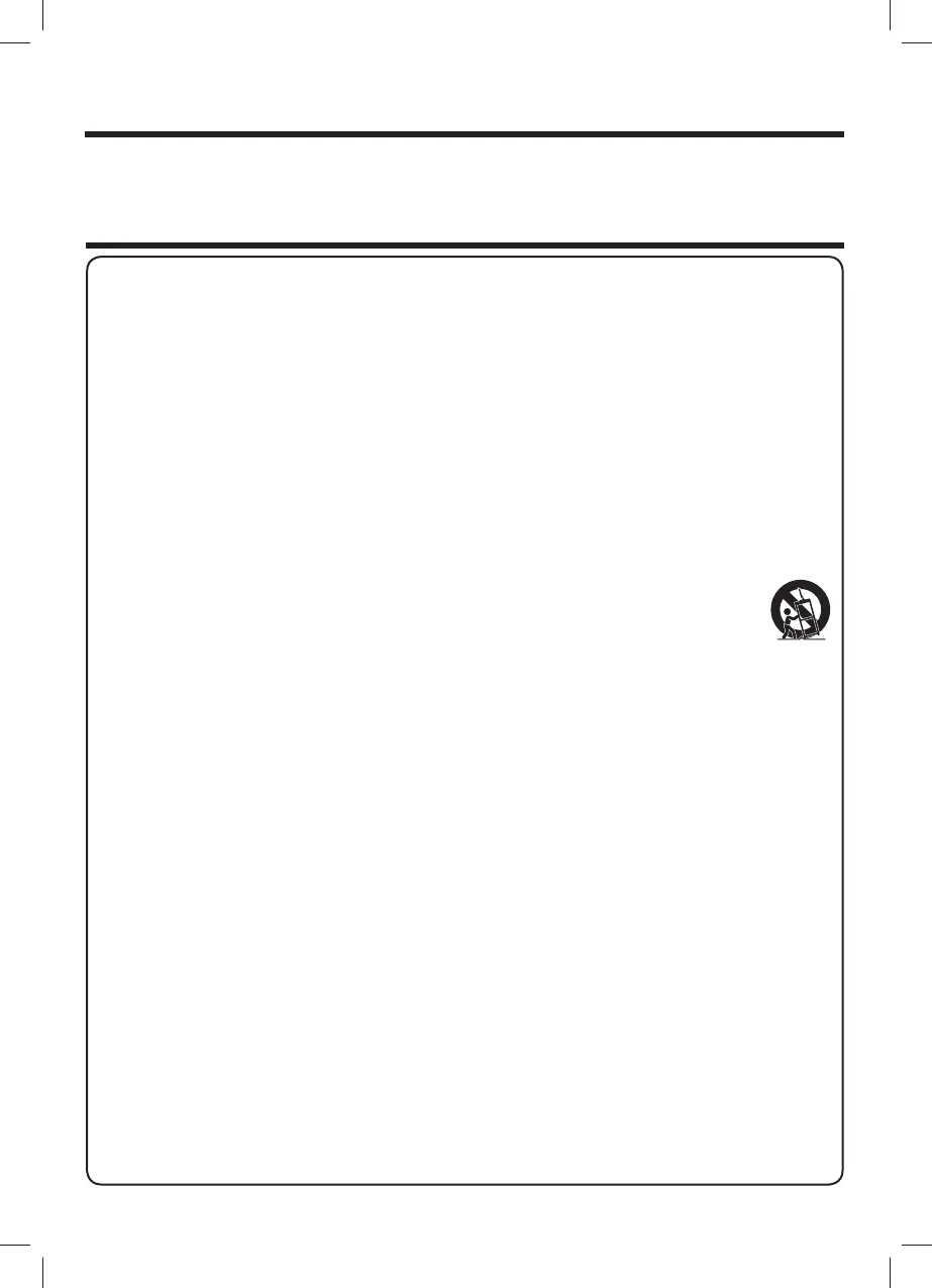 12)Utilice el aparato solamente con el carrito, soporte, trípode, ménsula o mesa especifi cado por el fabricante,
