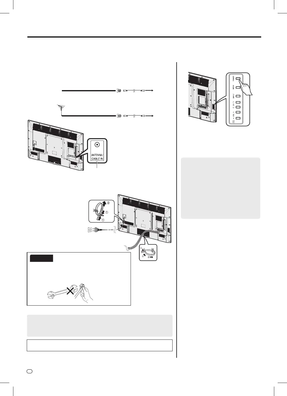 • Coloque el televisor cerca de la toma de CA, y mantenga el enchufe al alcance de la mano.